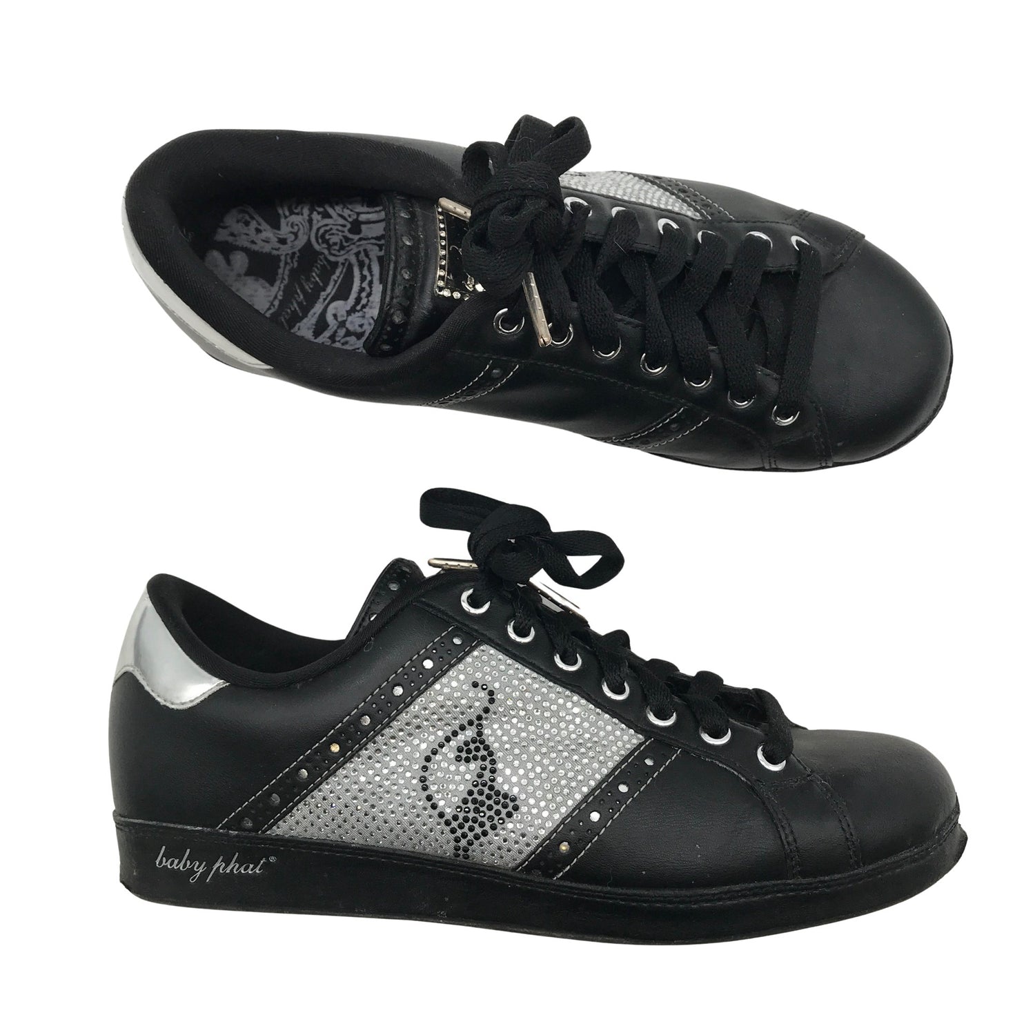 Baby phat Tennarit, koko 39. Nahkaa. Budjettilöytö. Tuotteen pinnassa on pesu-/käyttökulumaa. Tuotteen sisäpuolella on aavistus käyttölikaa. Yleisilme on siisti.