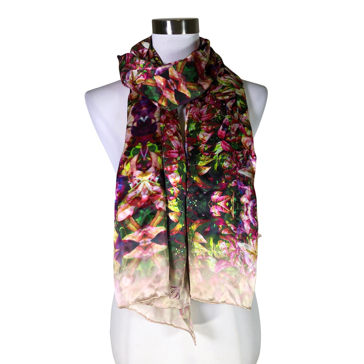 Langassa on kiiltoa. Materiaalitieto puuttuu, todennäköisesti silkkiä/silkkisekoitetta.