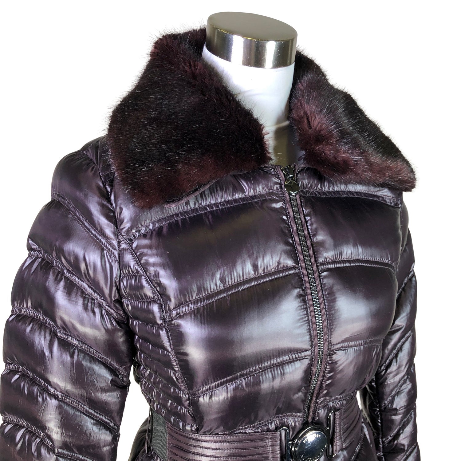 Tuotteeseen kuuluu vyö. Hihoissa on vetoketjut. Irrotettava karvakaulus.