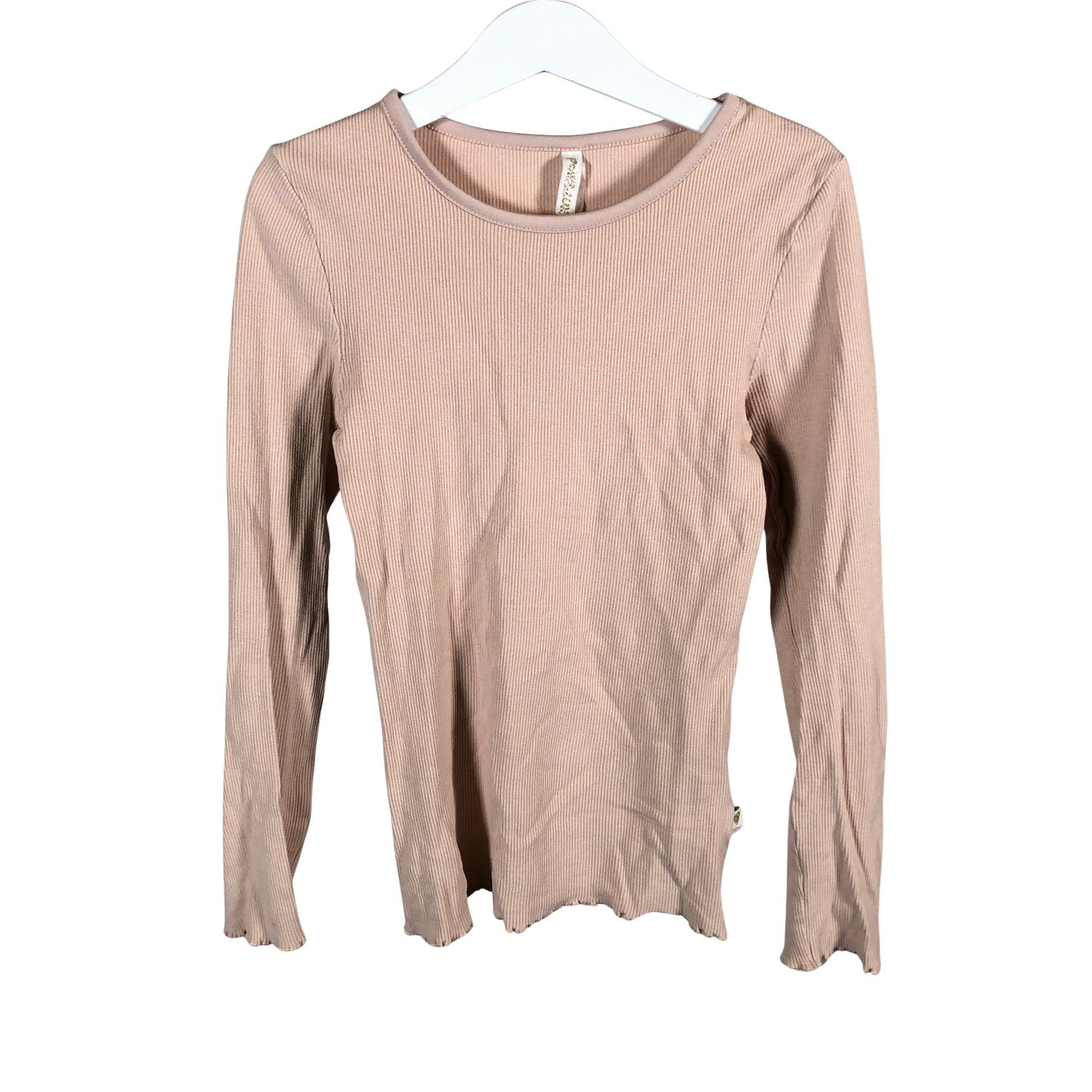 Väri: persikka. Tuotteen pinnassa on hieman pesu-/käyttökulumaa. Yleisilme on siisti.