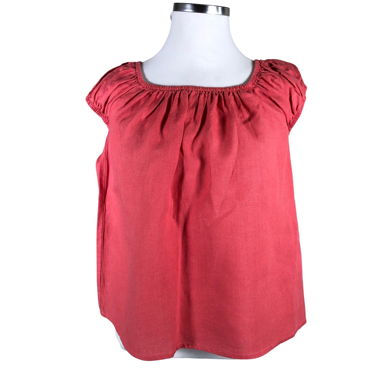 Tuotteessa on joustava kuminauharypytys. Pellavaa. Materiaali ei jousta. Väri: koralli.