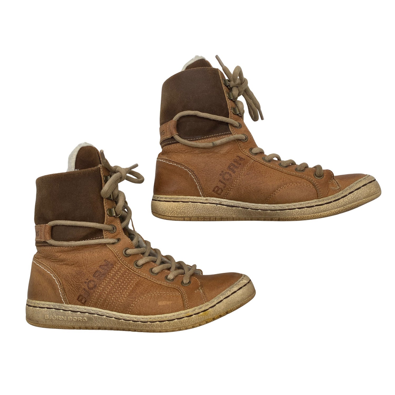 Björn Borg Tennarit, koko 38. Materiaalitieto puuttuu. Todennäköisesti nahkaa. Karvavuori. Tuotteen pinnassa on hieman pesu-/käyttökulumaa. Yleisilme on siisti.