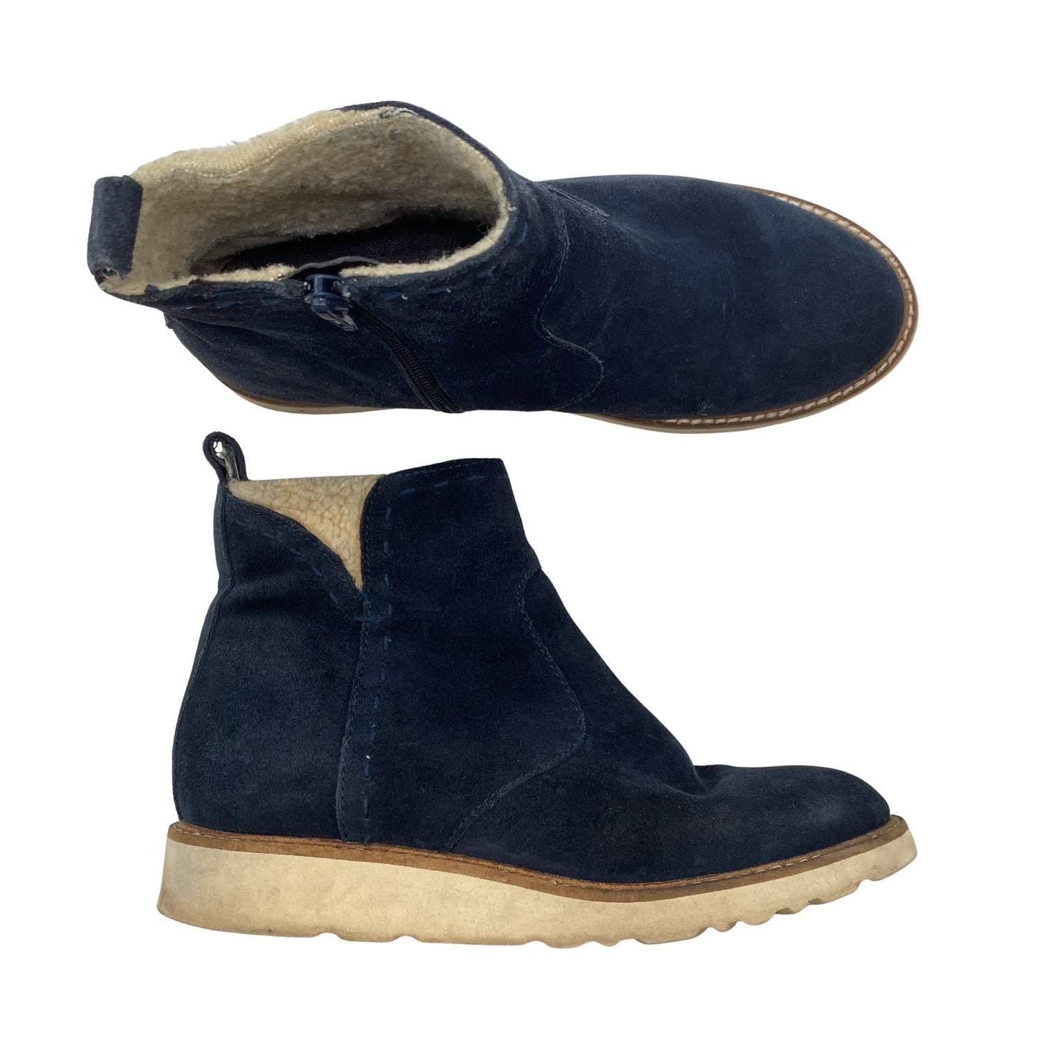 Mokkamainen pinta. Karvavuori. Materiaalitieto puuttuu. Todennäköisesti nahkaa. Tuotteen pinnassa on hieman pesu-/käyttökulumaa. Yleisilme on siisti.