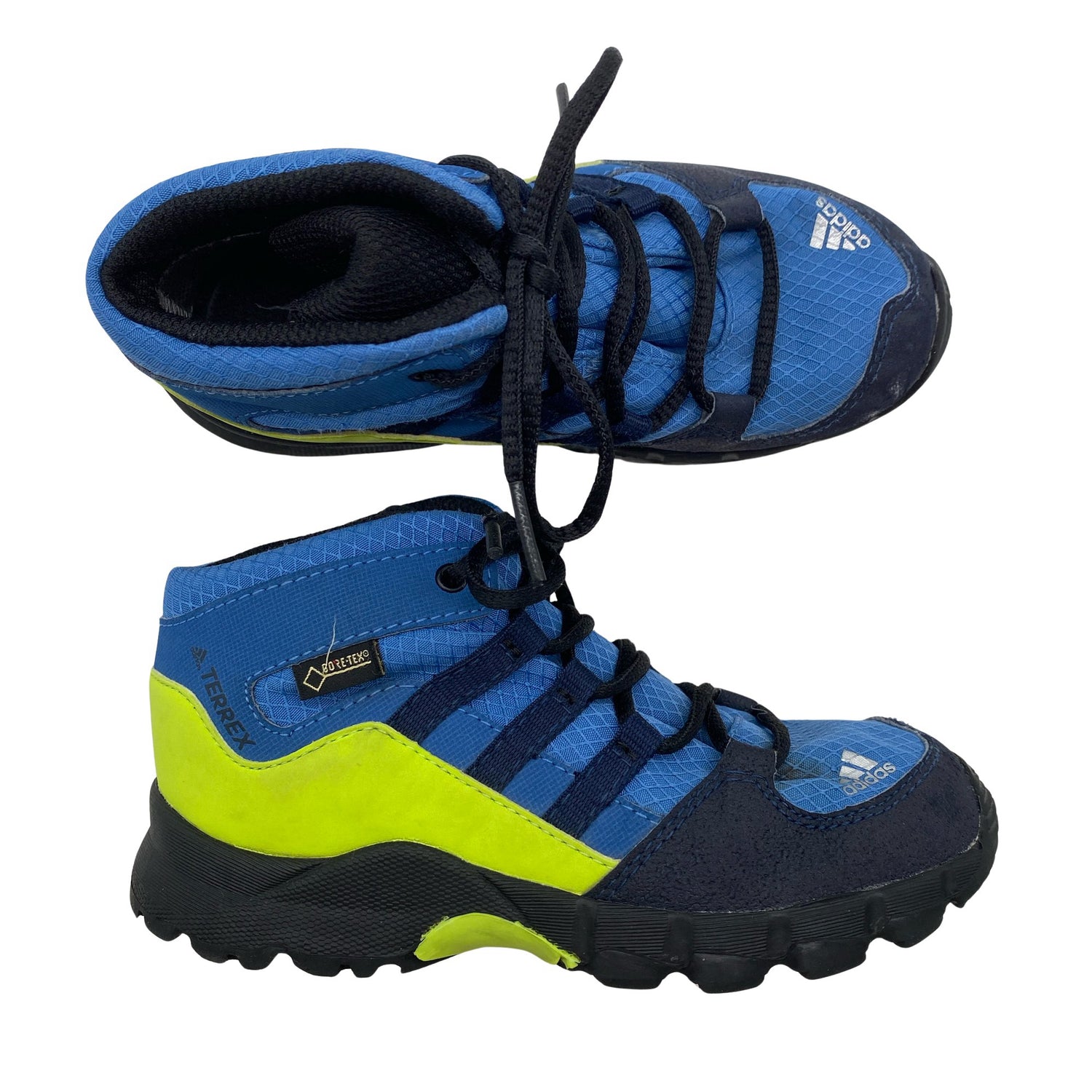Adidas Välikausikengät, koko 27. Gore-Tex -merkintä. Solmittava malli. Tuotteen pinnassa on aavistus pesu-/käyttökulumaa. Yleisilme on siisti.