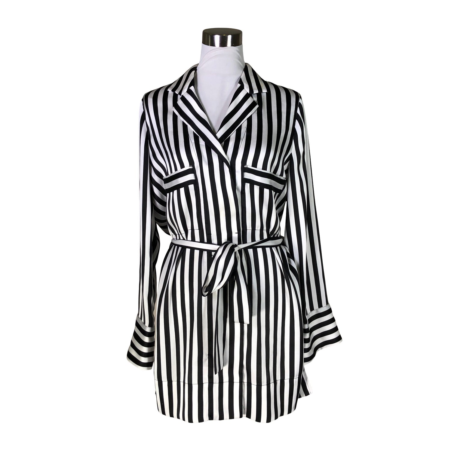 Malli: Lanfi. Ohutta materiaalia. Piilonapitus. Sivusaumoissa on halkiot. Tuotteeseen kuuluu vyö.