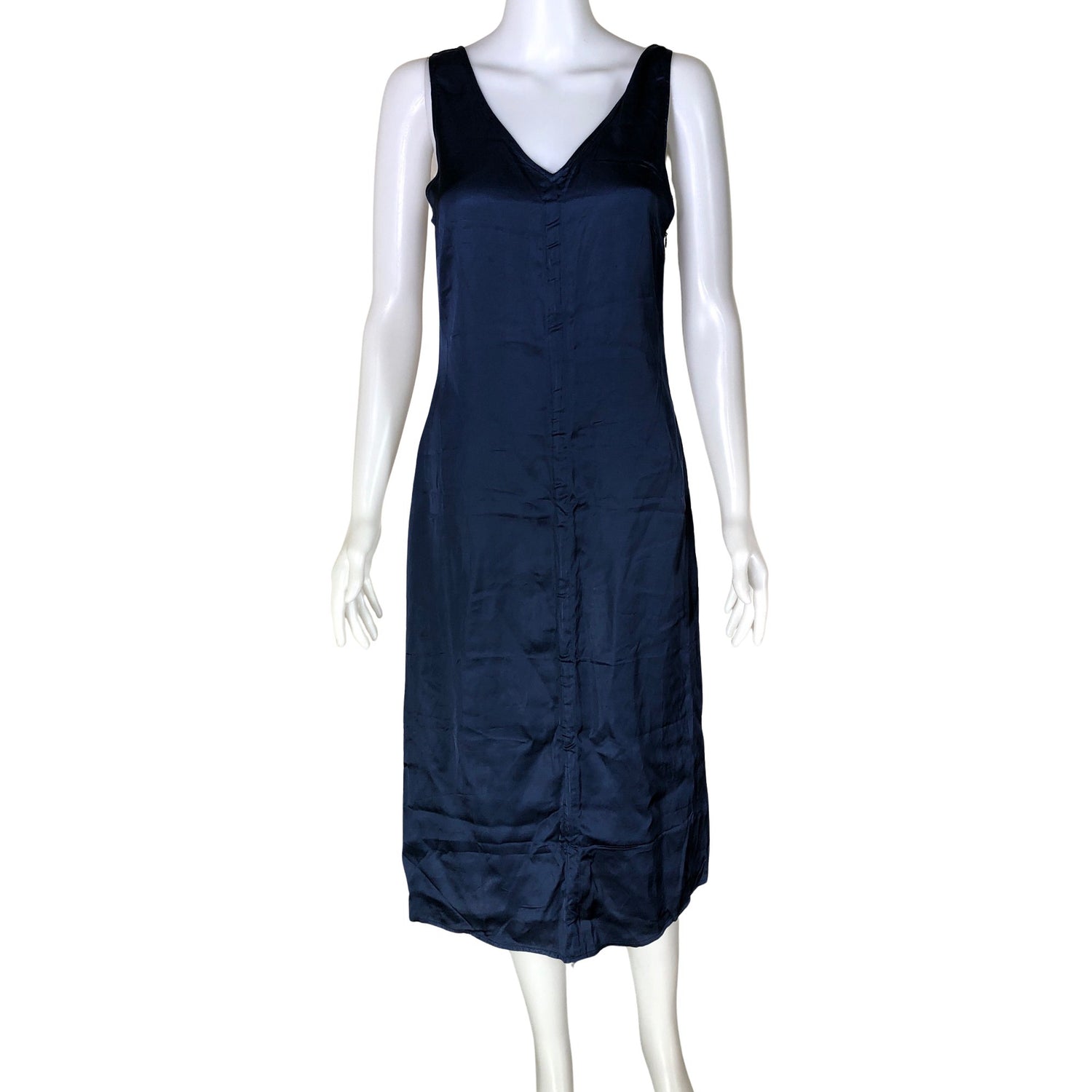 Malli: Drawstring Front Dress. Materiaali ei jousta. Sivusaumassa on vetoketju. Tuotteen pinta on liukasta materiaalia.