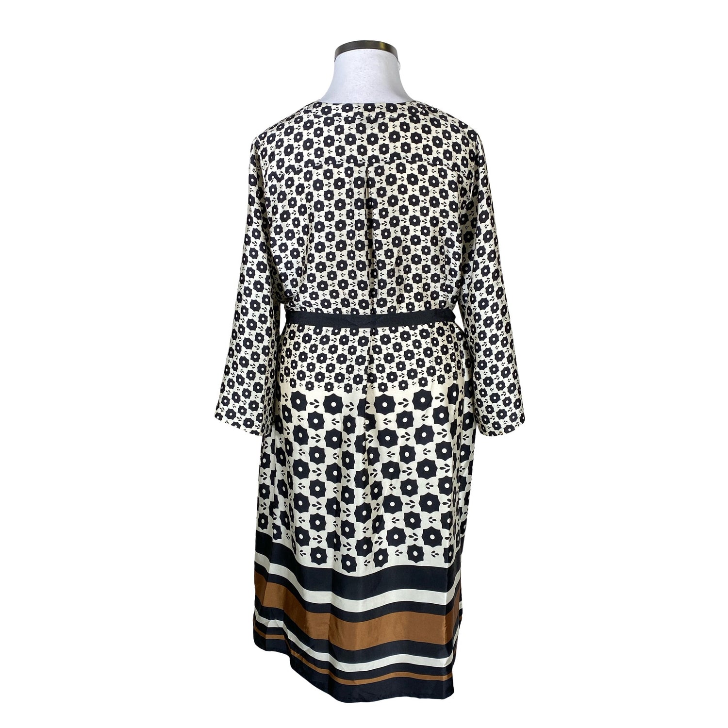 Laskeutuvaa materiaalia. Vajaamittaiset hihat. Tuotteeseen kuuluu vyö. Sivusaumoissa on halkiot. Syvään uurrettu pääntie. Kauluksessa on hieman meikkitahraa. Tuote vaatii pesun. Tuote on muilta osin hyvässä kunnossa.