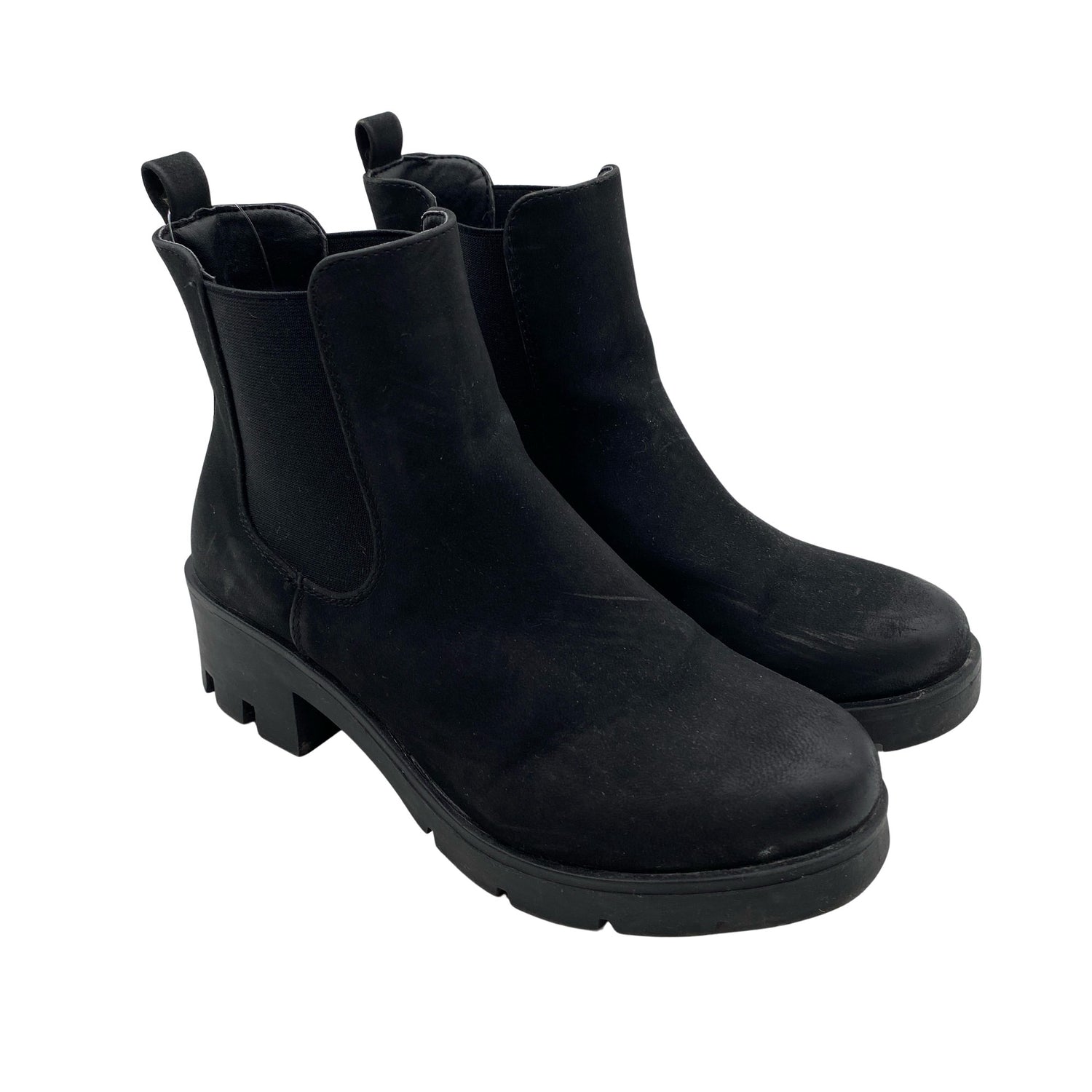 Varsi joustaa hieman. Keinonahkaa. Tuotteen pinnassa on aavistus pesu-/käyttökulumaa. Yleisilme on siisti.