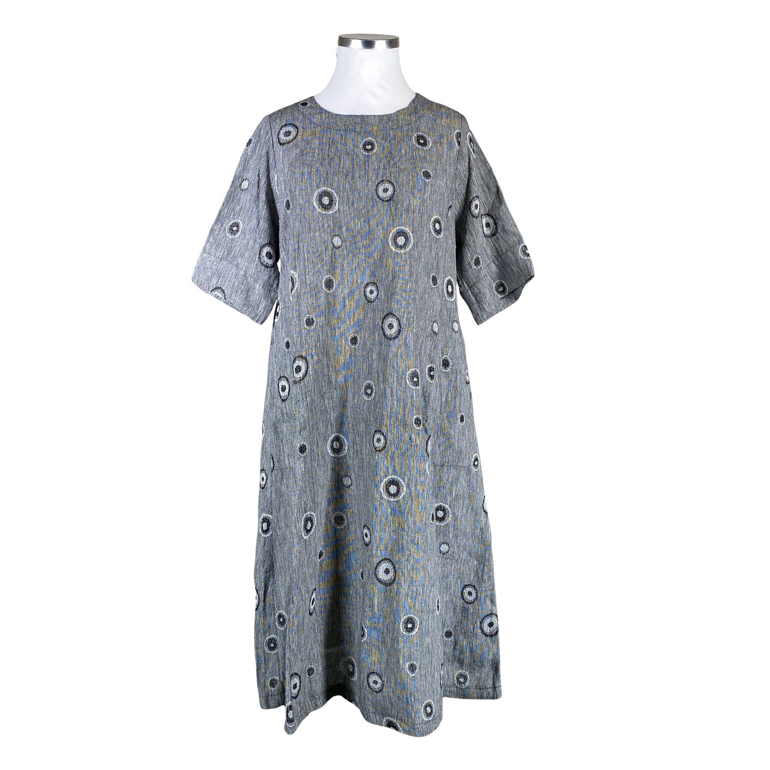 Pellavasekoitetta. Vaatteessa on taskut.