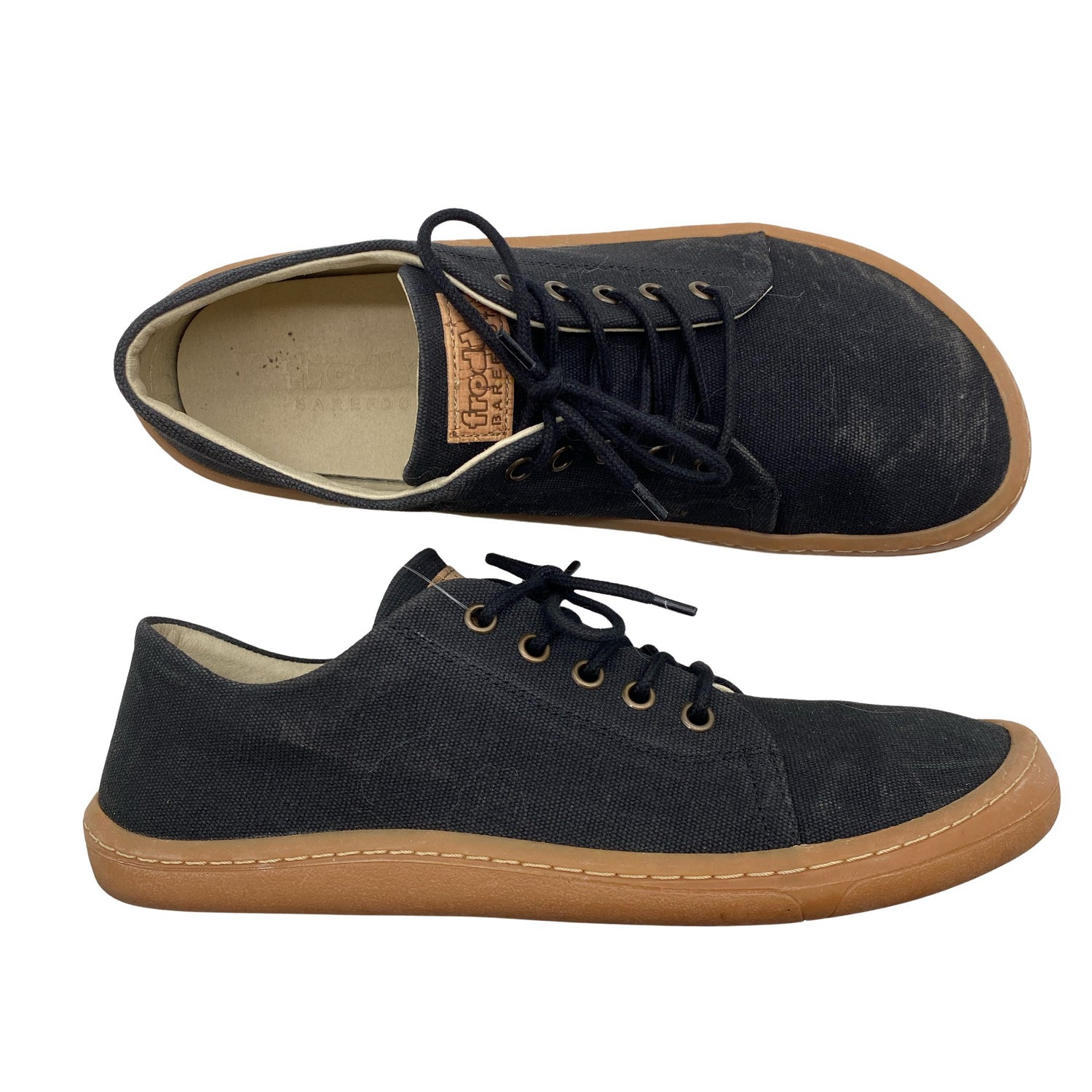 Paljasjalkakengät. Tekstiiliä. Tuotteen pinnassa on hieman käyttölikaa. Lähtee todennäköisesti pesussa. Tuote on muilta osin hyvässä kunnossa.