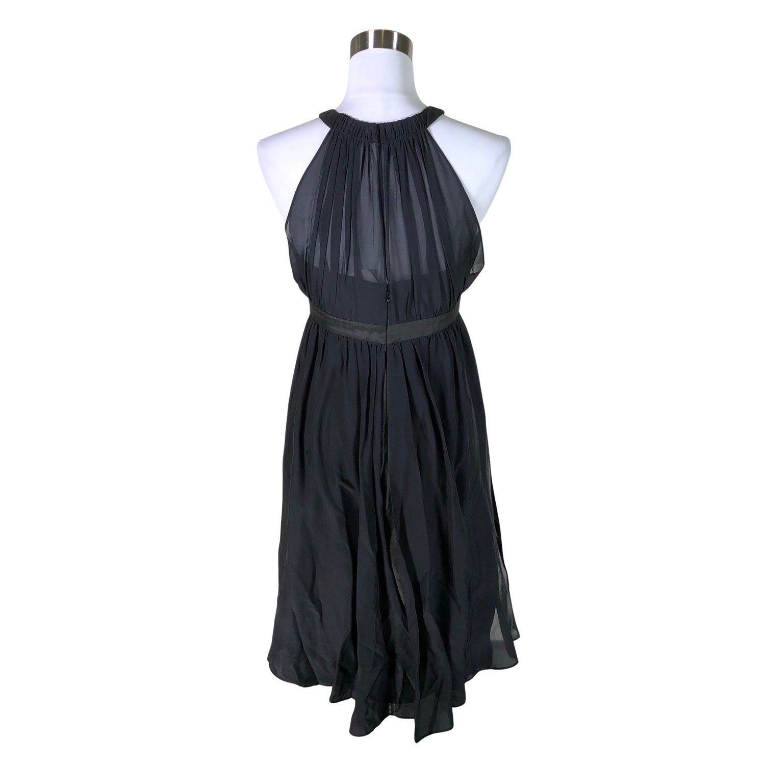 Halterneck-malli. Vetoketju takana. Materiaali ei jousta. Silkkiä.