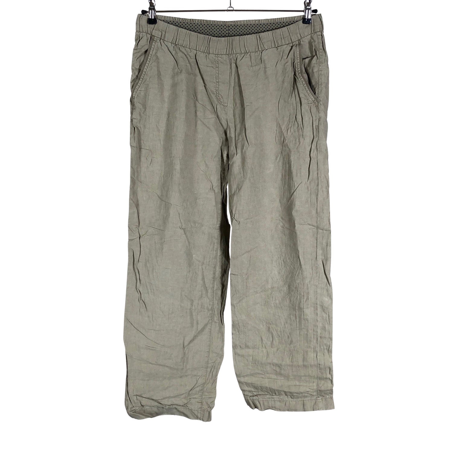 Joustava vyötärö. Pellavaa. Tuotteen pinnassa on aavistus pesu-/käyttökulumaa. Yleisilme on siisti.