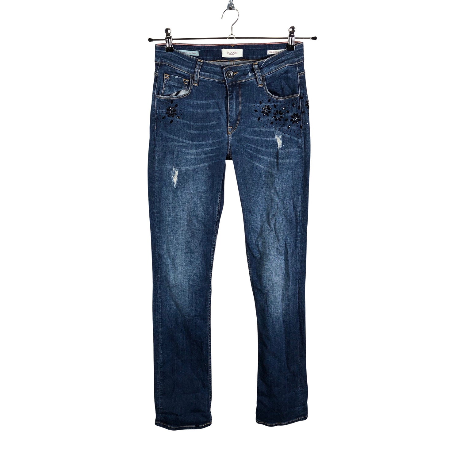 Malli: straight, low waist. Kulutettu kuosi.
