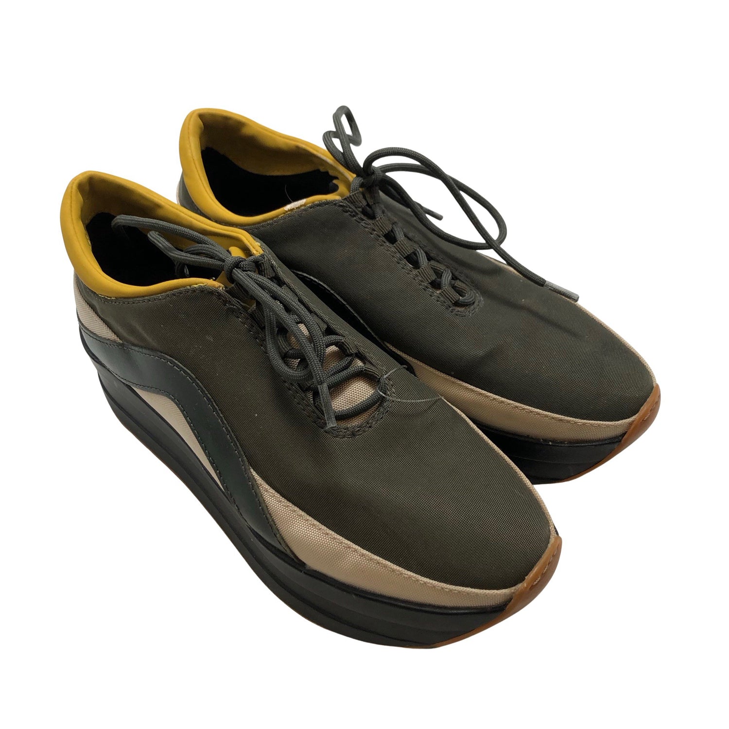 Malli: platform. Tuotteessa on muutama nirhauma. Tuotteen pinnassa on aavistus pesu-/käyttökulumaa. Yleisilme on siisti.