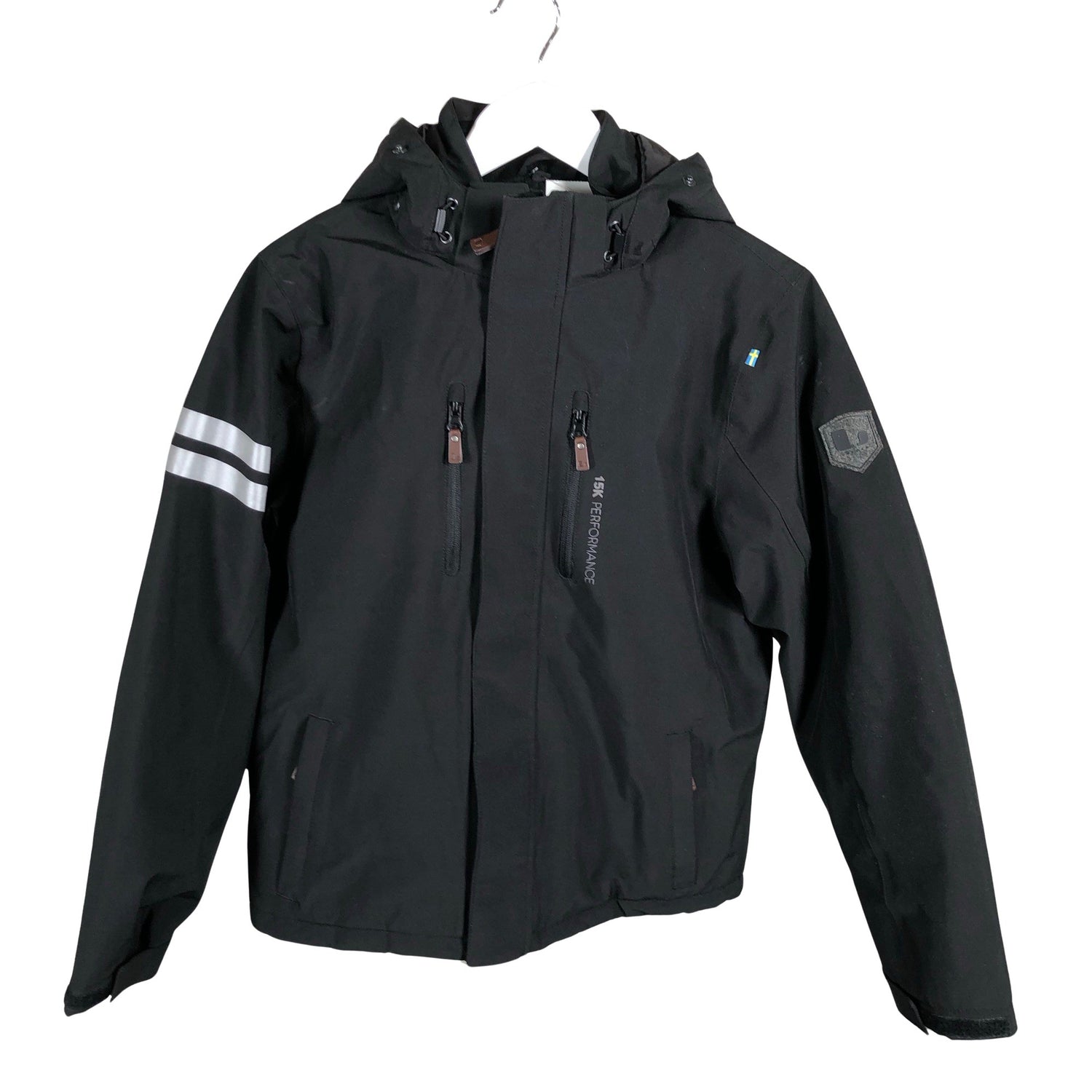 Lämmin vuori/Paksu vuori. Helmassa ja/tai lahkeissa on lumilukot. Irrotettava huppu. Tuotteessa on heijastavia yksityiskohtia.