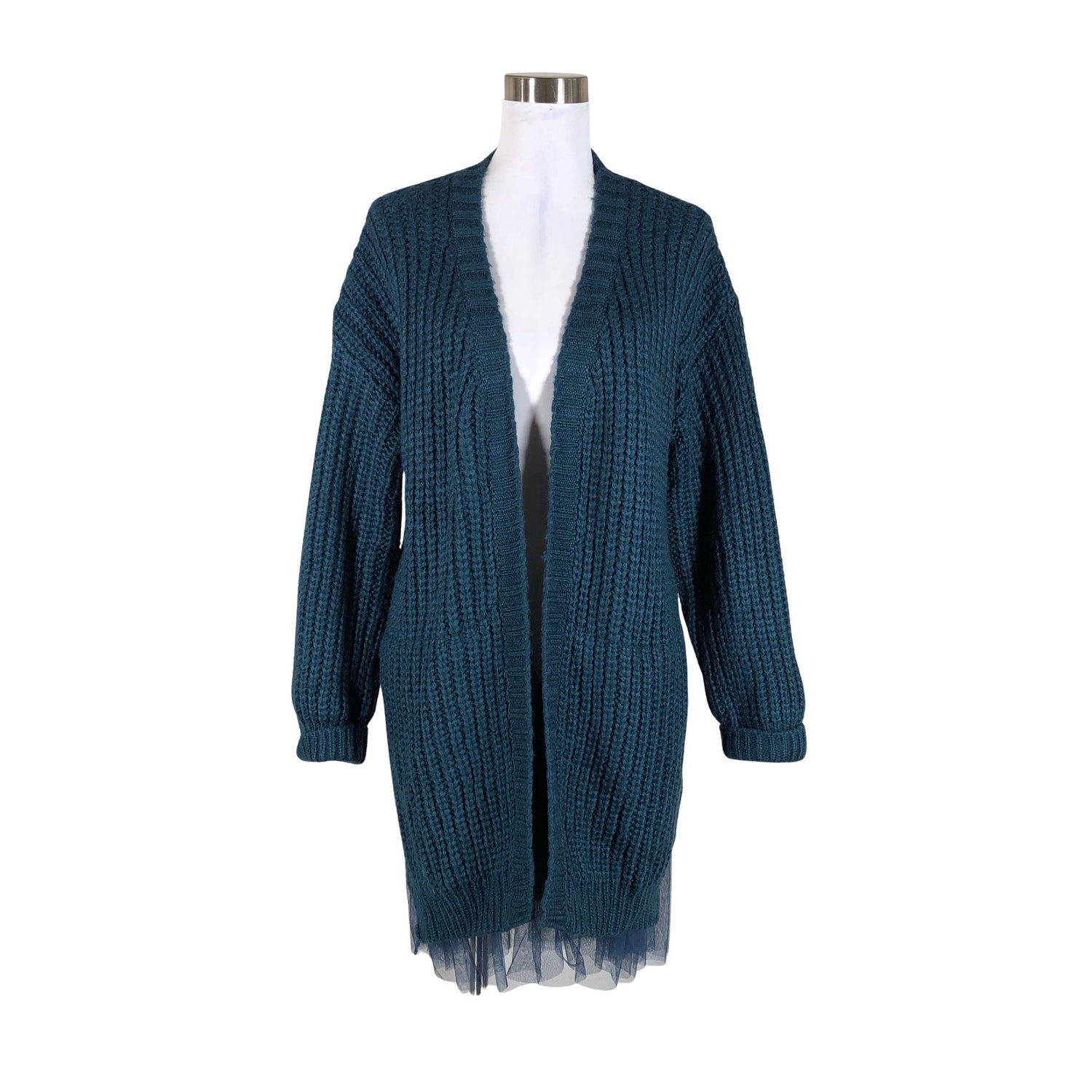 Sh# 86,99 €. Vaate sopii monessa koossa. Avonainen malli. Paksua neulosta. Väri: petrooli.