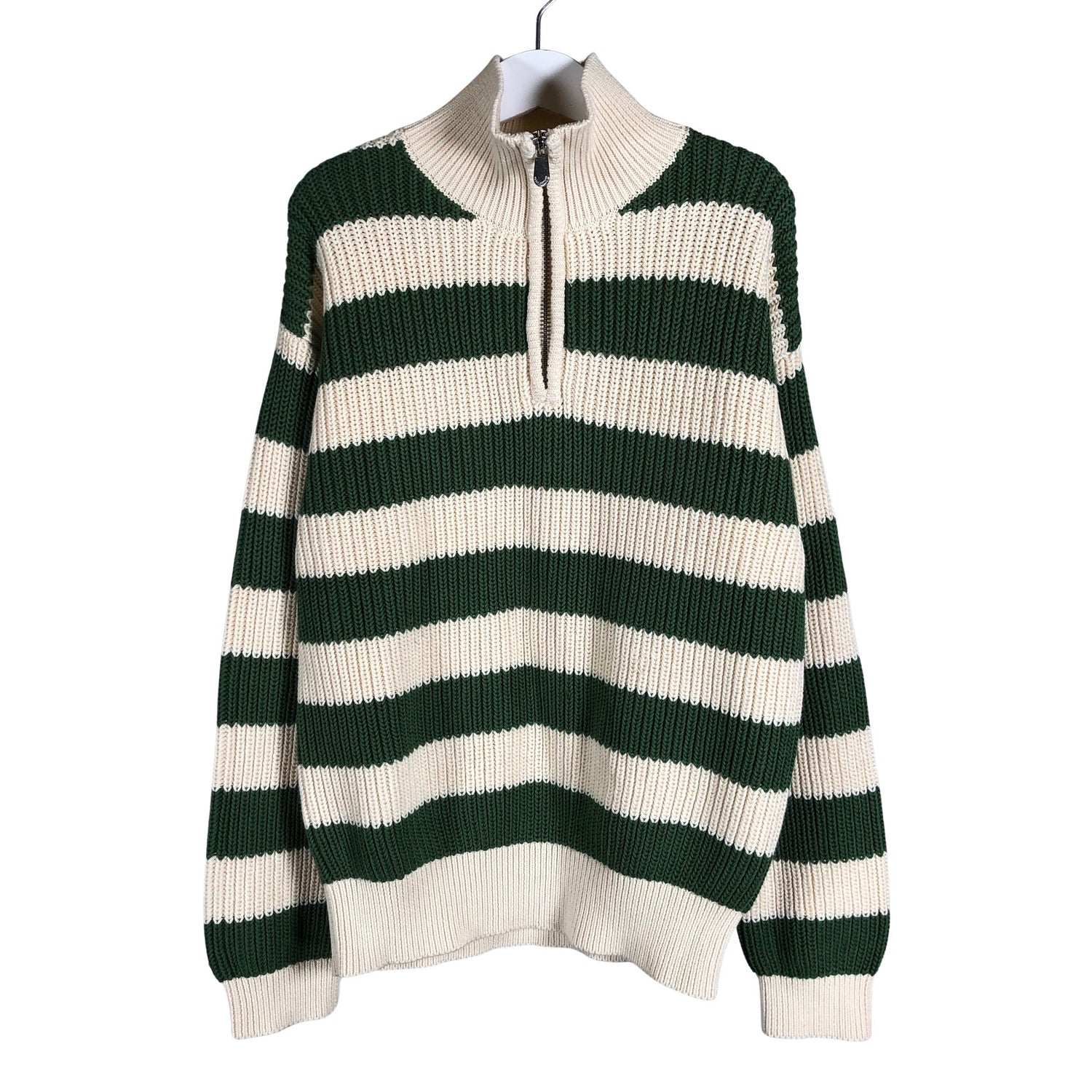 Paksua neulosta. Puuvillaa. Korkea kaulus.