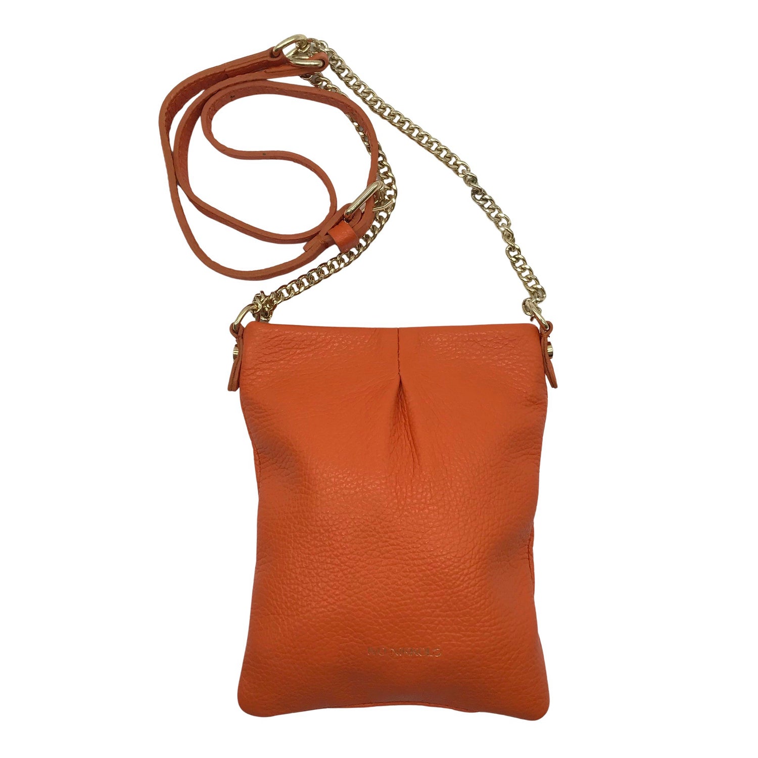 Crossbody. Kultaiset metallisosat. Olkahihnan pituus on säädettävissä.