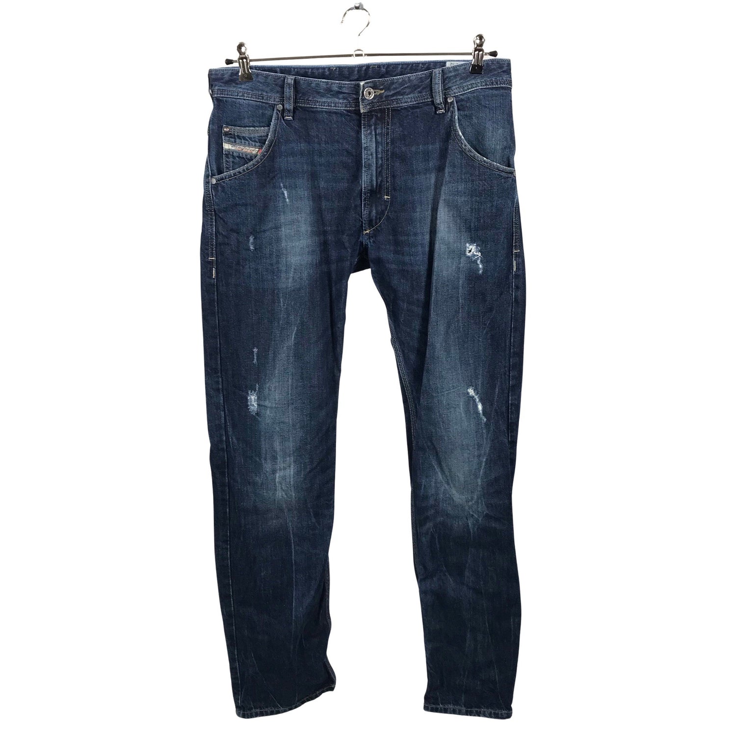 Malli: Krooley, regular slim, carrot. Kulutettu kuosi. Tuotteen pinnassa on hieman pesu-/käyttökulumaa. Hihan- ja/tai lahkeensuissa on kulumaa. Yleisilme on siisti.