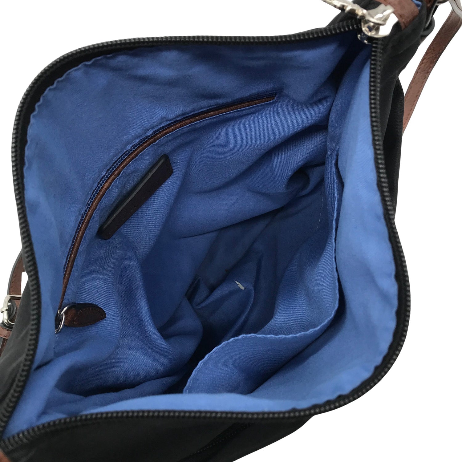 Crossbody. Tekstiiliä. Malli: Kanalana. Tuotteen sisäpuolella on aavistus käyttölikaa. Yleisilme on siisti.