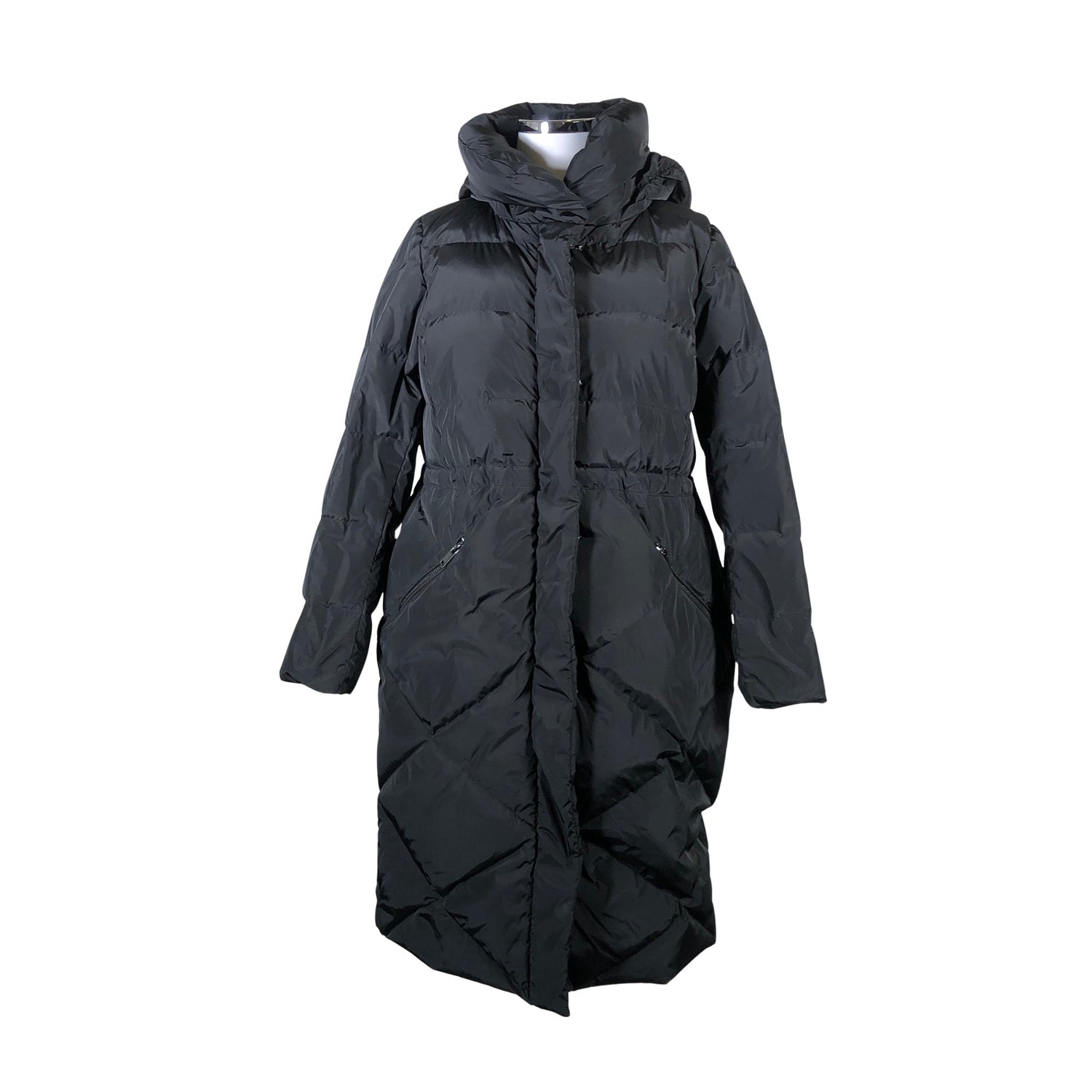 Malli: Nolita. Pitkä malli. Tuotteessa on huppu. Kiristysnauha vyötäröllä. Tuotteessa on kaksisuuntainen vetoketju. Tuotteen pinnassa on muutama haalea tahra. Tuote on muilta osin hyvässä kunnossa.