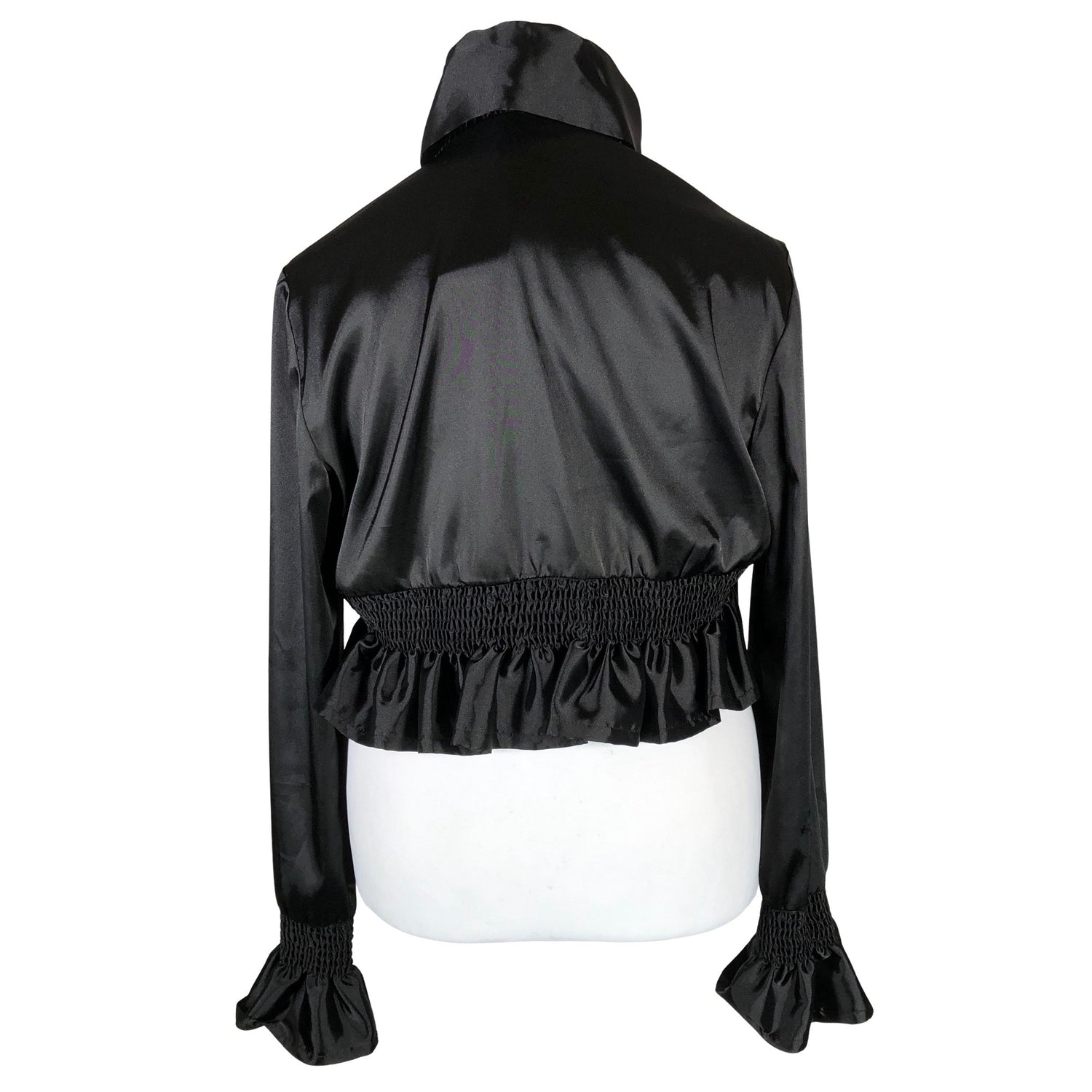 Avonainen malli. Satiinia. Tuotteen pinta on kiiltävä. Tuotteessa on joustava kuminauharypytys.