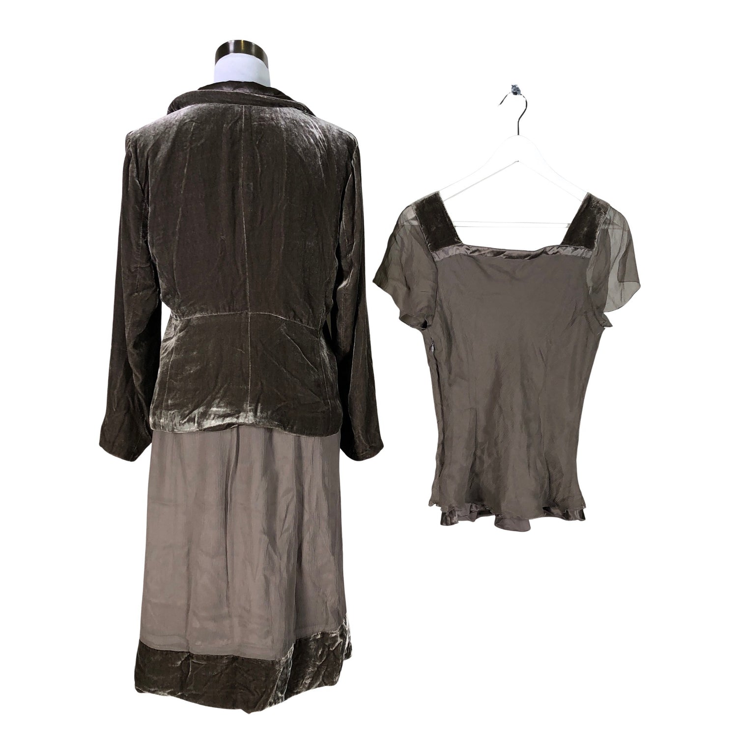 Setti. Samettia. Materiaali ei jousta. Vyötärön 1/2 mitta: 3 cm. Vyötärö-helma pituus: 64 cm. Tuotteen saumassa/saumoissa on hieman löystymää, ei vaikuta käyttöön. Tuotteen pinnassa on aavistus pesu-/käyttökulumaa. Yleisilme on siisti.