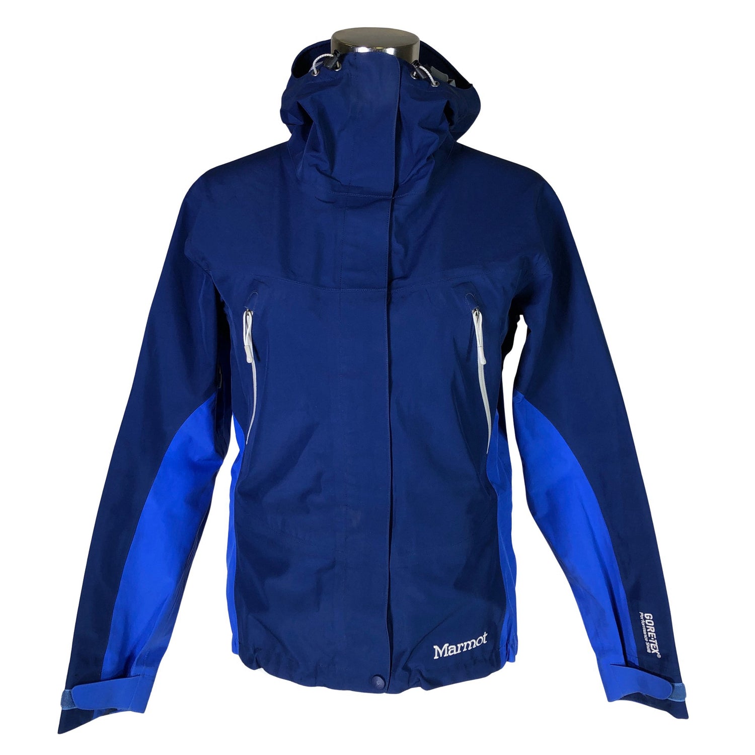 Gore-Tex -merkintä. Teipatut saumat. Helmassa ja/tai lahkeissa on lumilukot. Tuotteen pinnassa on haalea tahra. Tuotteen pinnassa on aavistus pesu-/käyttökulumaa. Yleisilme on siisti. Hihan- ja/tai lahkeensuissa on hieman tummentumaa. Tuote vaatii pesun.