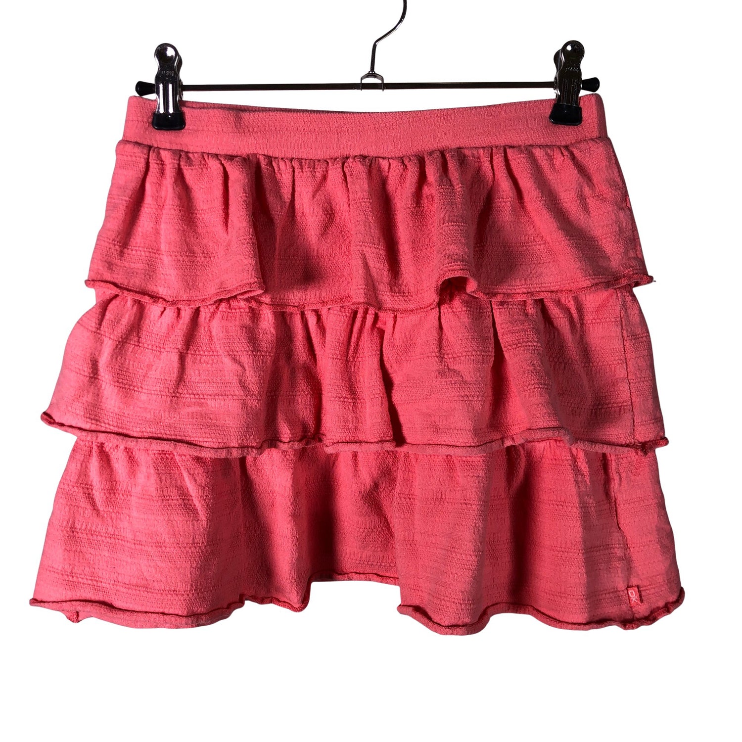 Joustava vyötärö. Väri: koralli. Tuotteen pinnassa on aavistus pesu-/käyttökulumaa. Yleisilme on siisti.