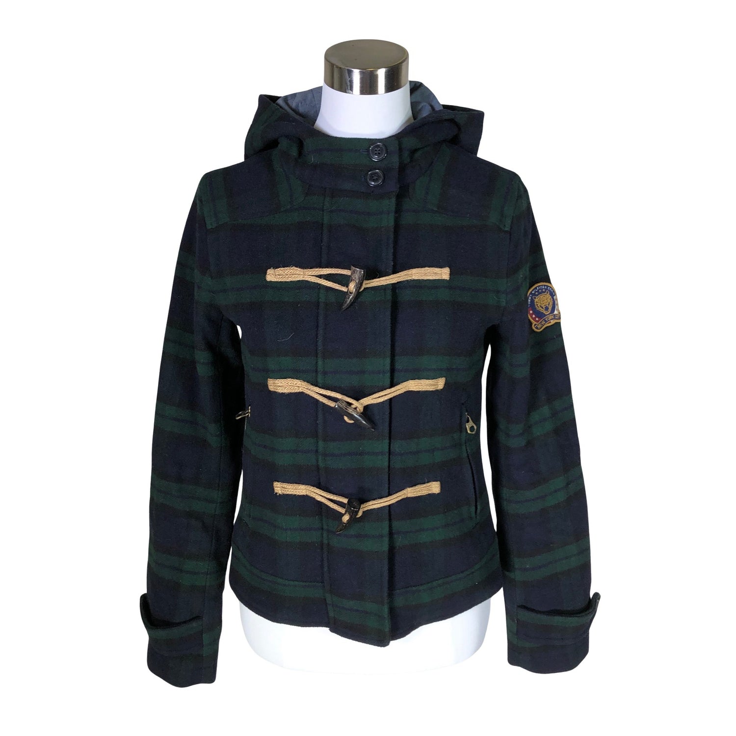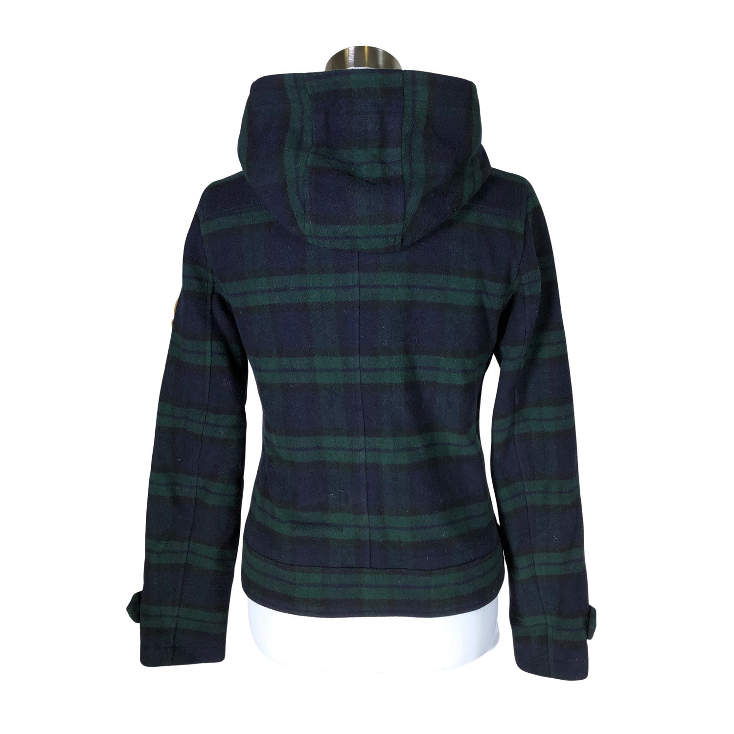 Duffelitakki. Tuotteessa on huppu. Villasekoitetta. Tuotteen pinnassa on aavistus nukkaa. Tuotteen pinnassa on aavistus pesu-/käyttökulumaa. Yleisilme on siisti.