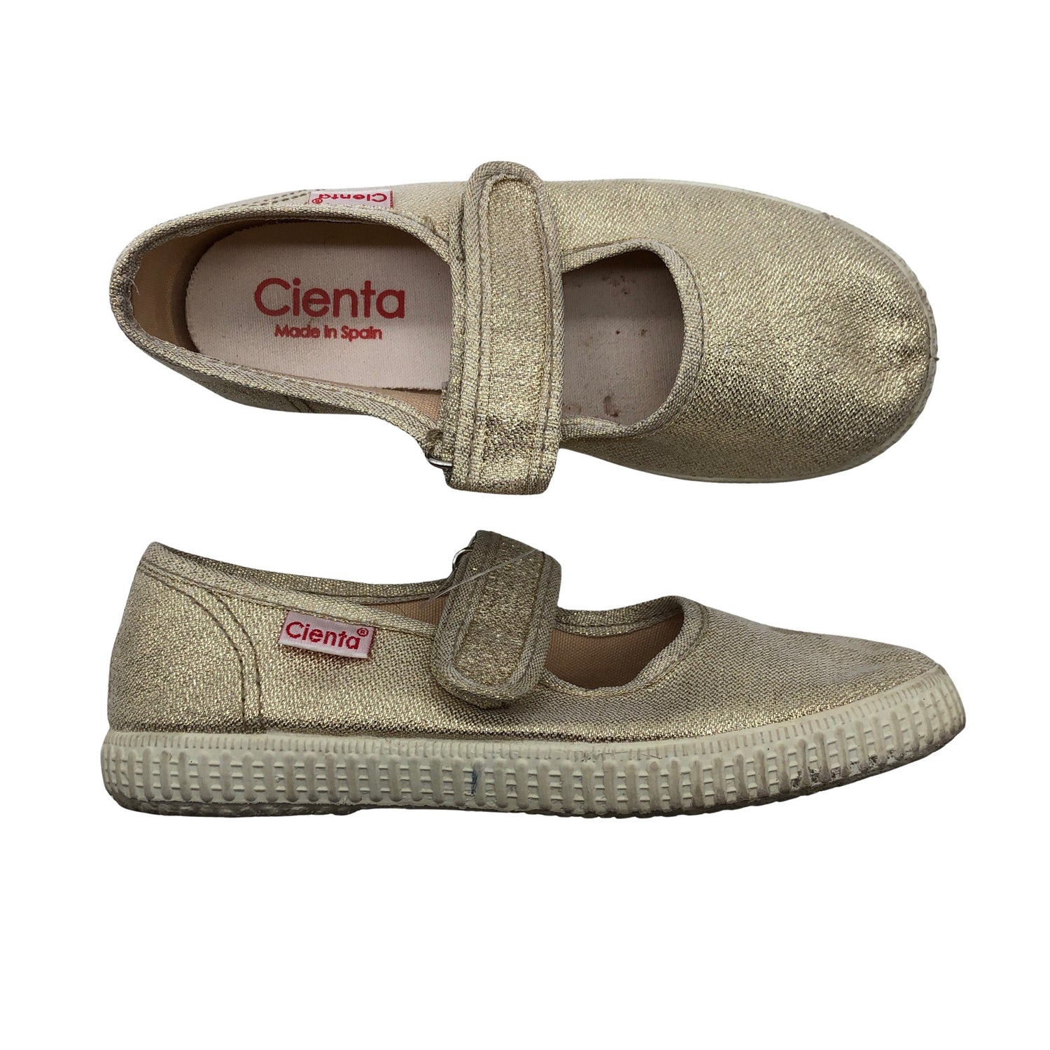 Cienta Loaferit, koko 30. Tekstiiliä. Tuotteen pinnassa on kimalletta. Tuotteen sisäpuolella on muutama haalea tahra. Tuote on muilta osin hyvässä kunnossa.