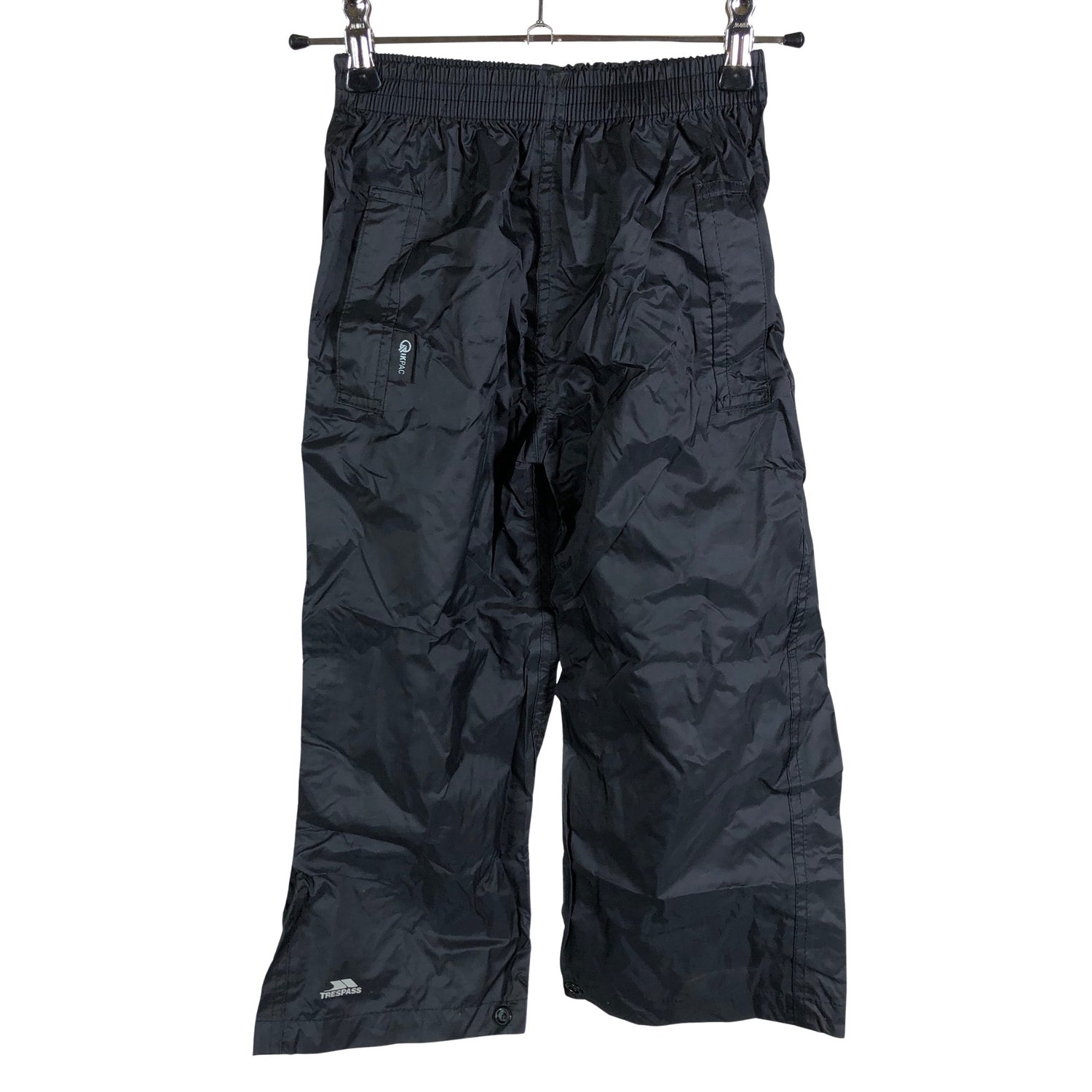 Trespass Ulkoiluhousut, koko 98 - 104. Waterproof -merkintä. Breathable -merkintä. Malli: Qikpac. Tuotteen saa pakattua pieneen tilaan.