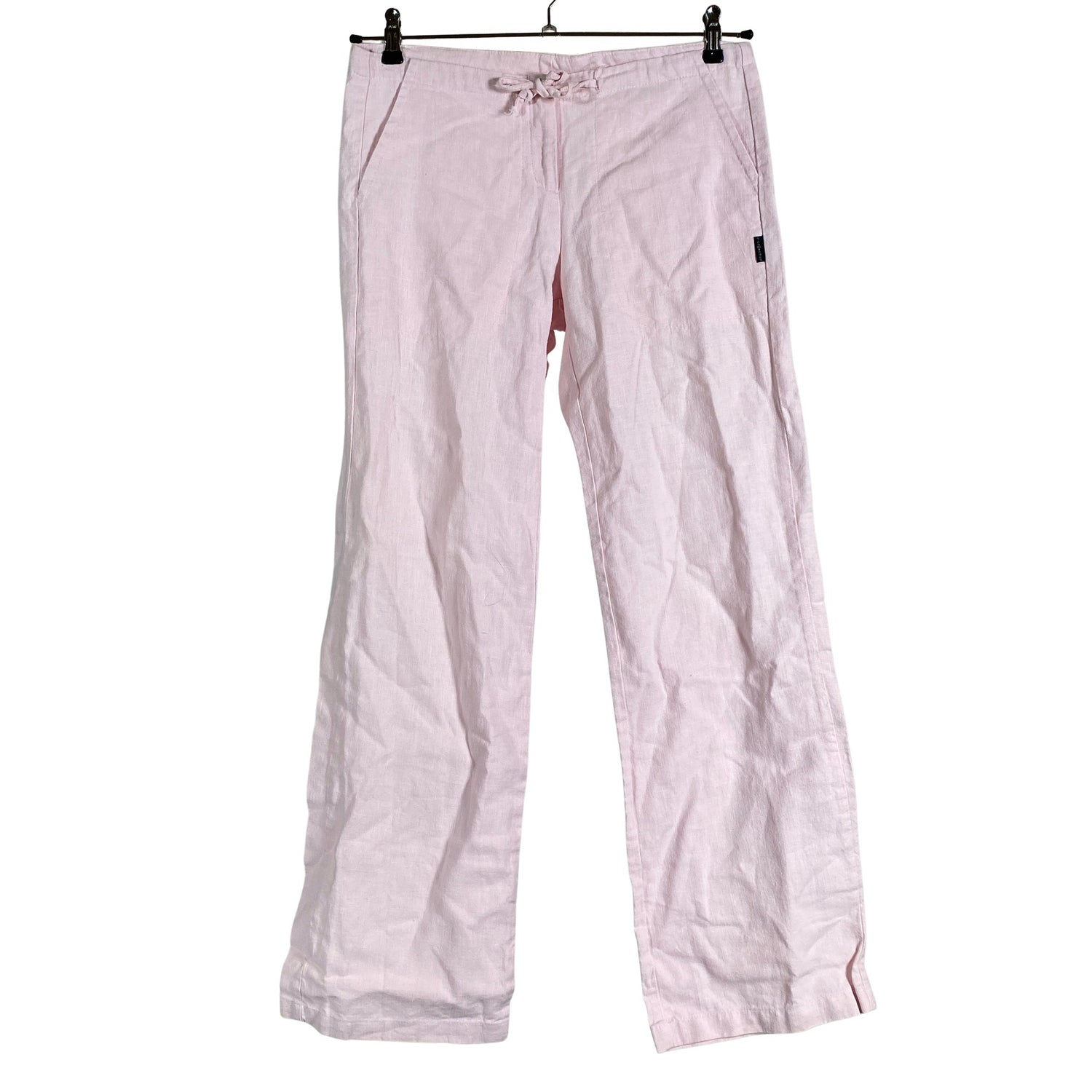 Pellavaa. Tuotteen pinnassa on hieman pesu-/käyttökulumaa. Yleisilme on siisti.