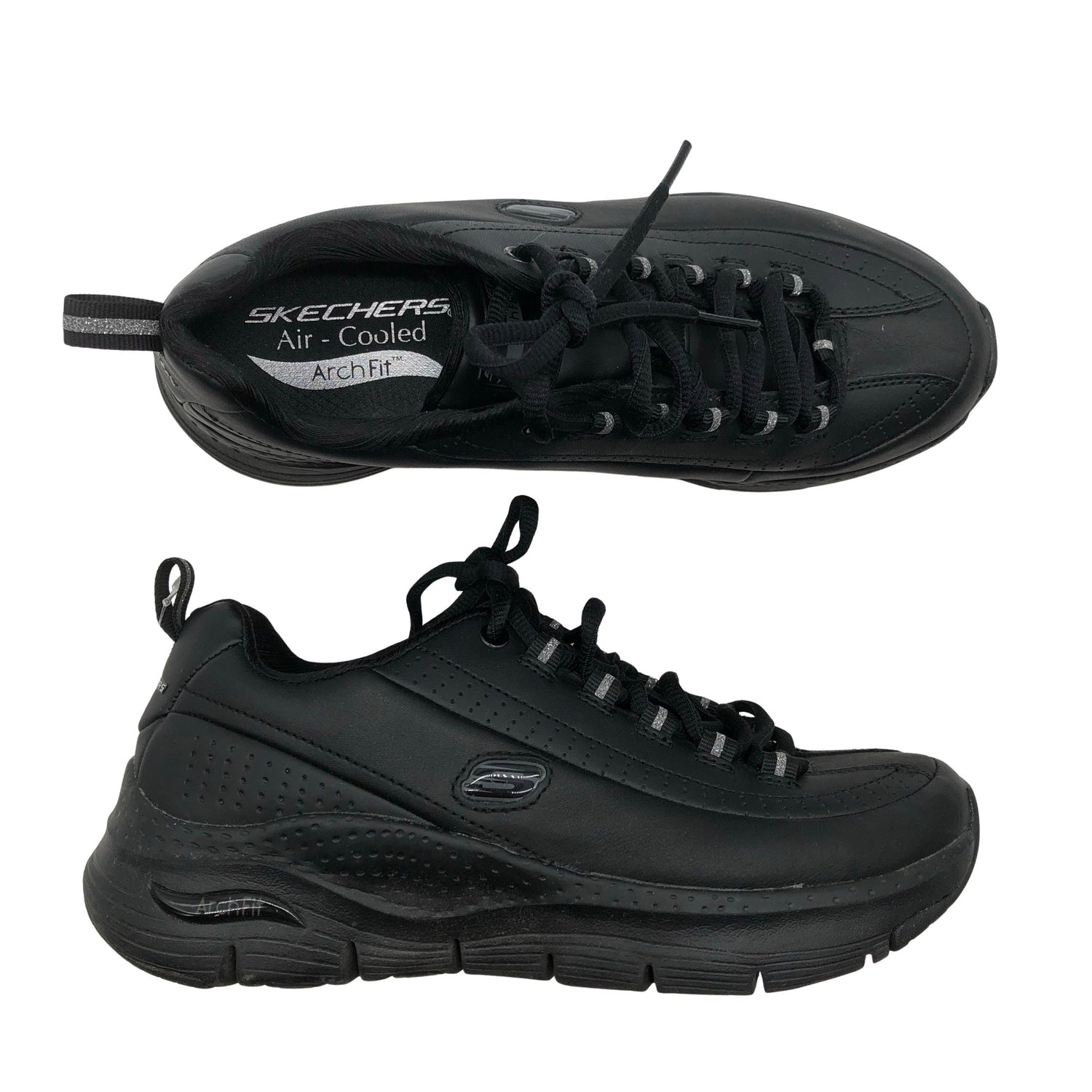 Malli: Arch Fit. Nahkaa. Tuotteessa on heijastavia yksityiskohtia.