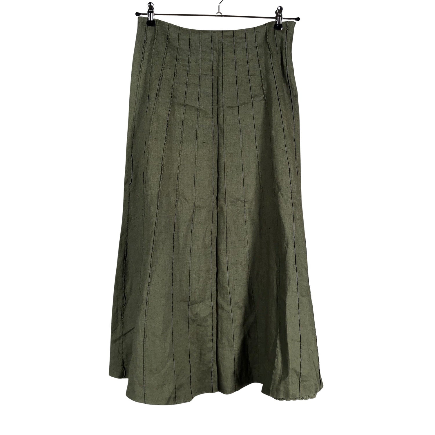 Pellavaa. Puuvillavuori. Sivusaumassa on vetoketju. Materiaali ei jousta.