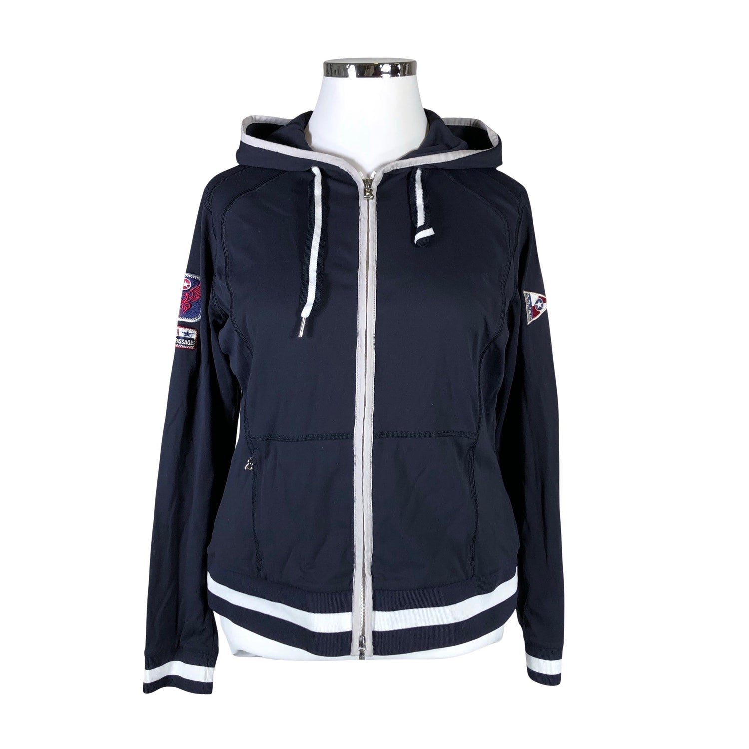 Tuotteen taskuissa on vetoketjut. Materiaali joustaa. Tuotteen pinnassa on hieman pesu-/käyttökulumaa. Yleisilme on siisti.