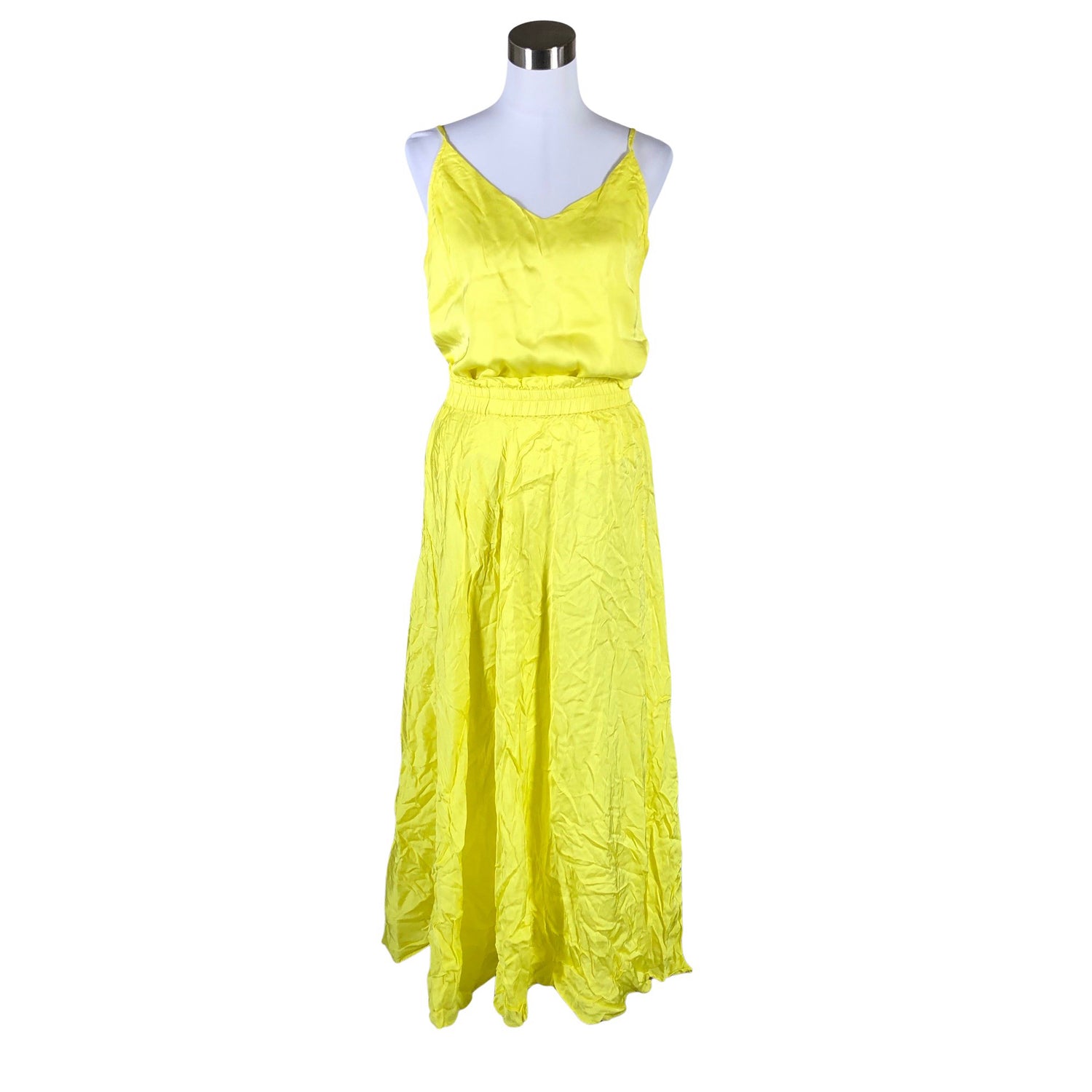 Vyötärö-helma pituus: 98 cm. Vyötärön 1/2 mitta: 35 cm. Setti. Tuotteen pinta on liukasta materiaalia. Satiinia. Säädettävät olkaimet. Materiaali ei jousta.