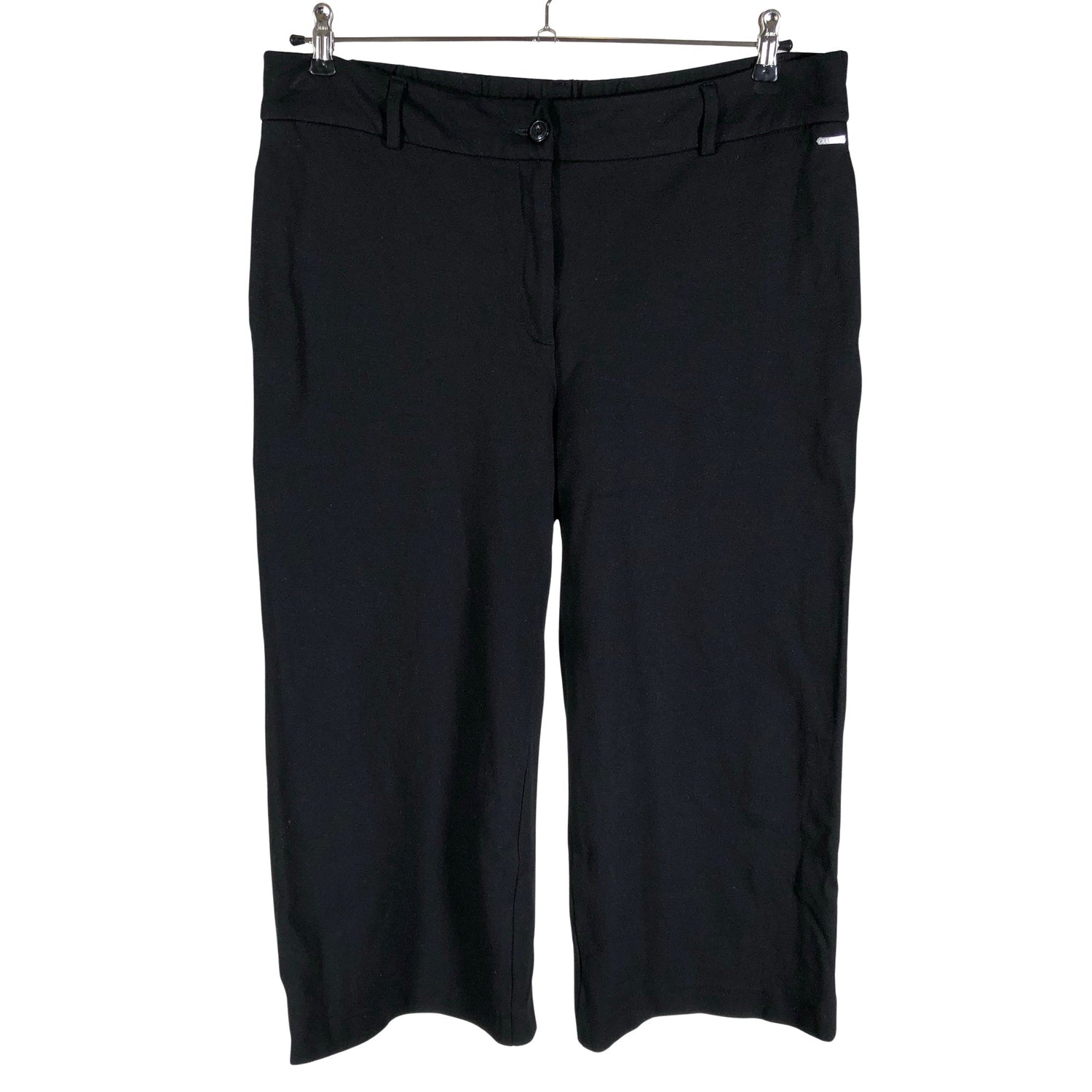 Joustava vyötärö. Materiaali joustaa. Vajaamittaiset lahkeet. Tuotteen pinnassa on haalea tahra. Lähtee todennäköisesti pesussa. Tuote on muilta osin hyvässä kunnossa.