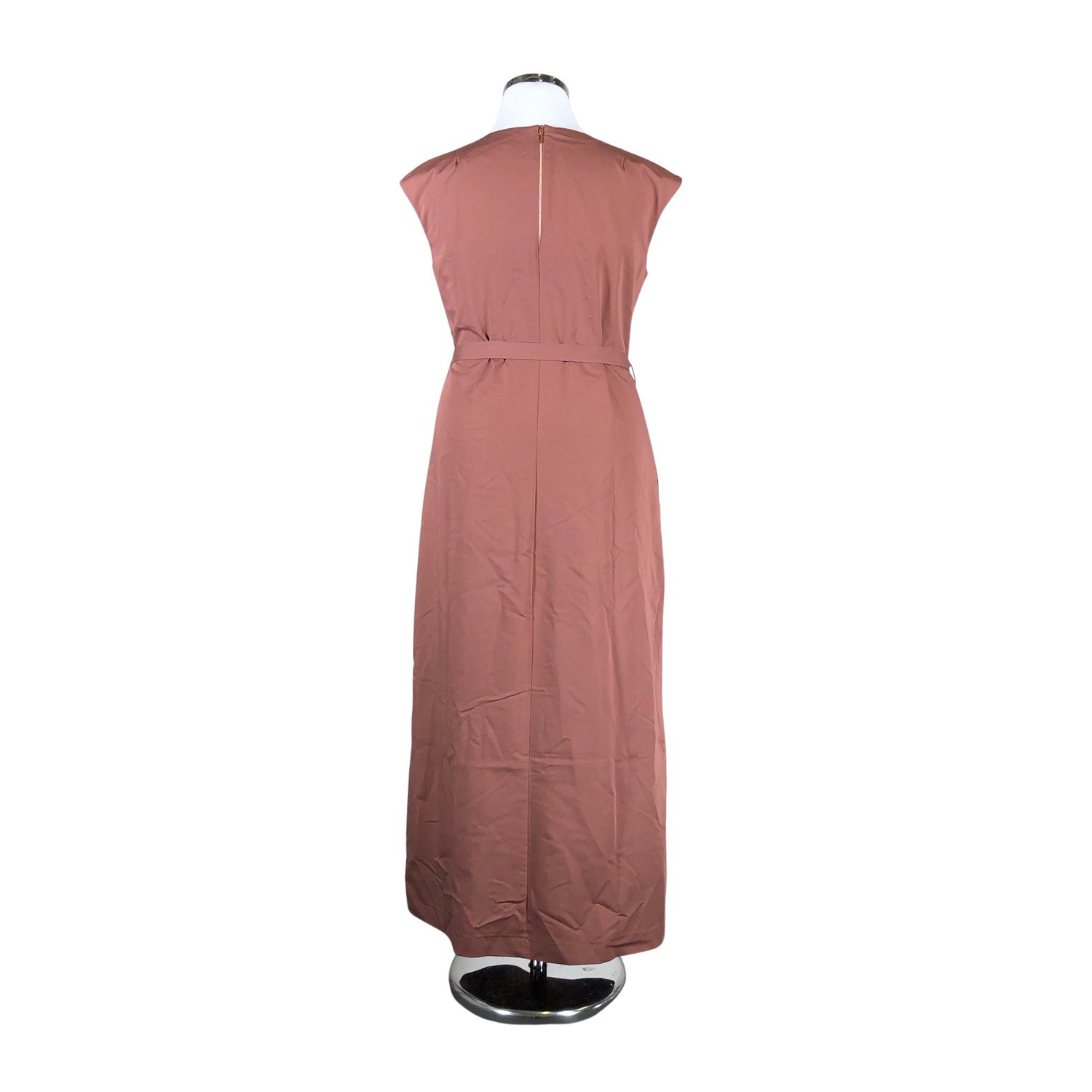 Sivusaumassa on halkio. Vetoketju takana. Tuotteeseen kuuluu vyö. Tuotteen pinnassa on haalea tahra. Tuote on muilta osin hyvässä kunnossa.