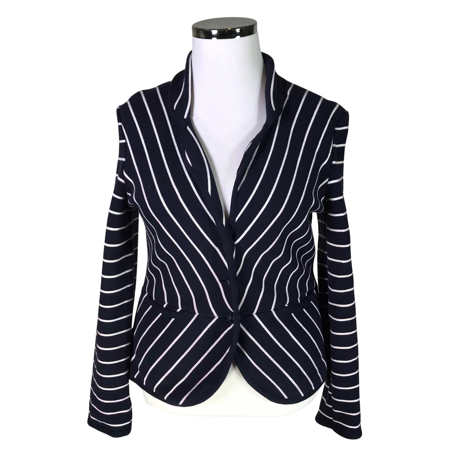 Paksua neulosta. Vaatteessa on taskut. Tuotteessa ei ole vuorta. Materiaali joustaa. Tuotteen pinnassa on hieman pesu-/käyttökulumaa. Tuotteen pinnassa on aavistus tummentumaa. Yleisilme on siisti.