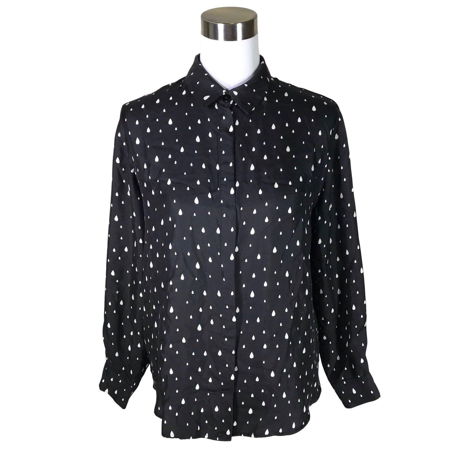 Silkkiä. Materiaali ei jousta. Pyöristetty helma. Tuotteen pinnassa on langannousu/langankiristymä. Tuote on muilta osin hyvässä kunnossa.