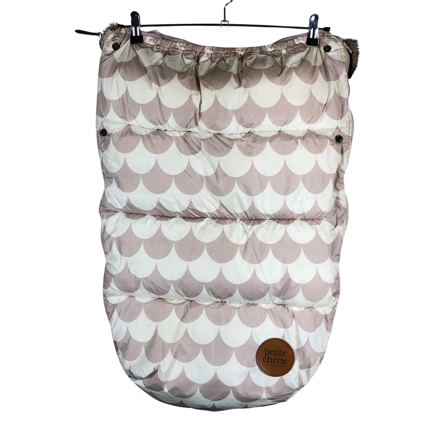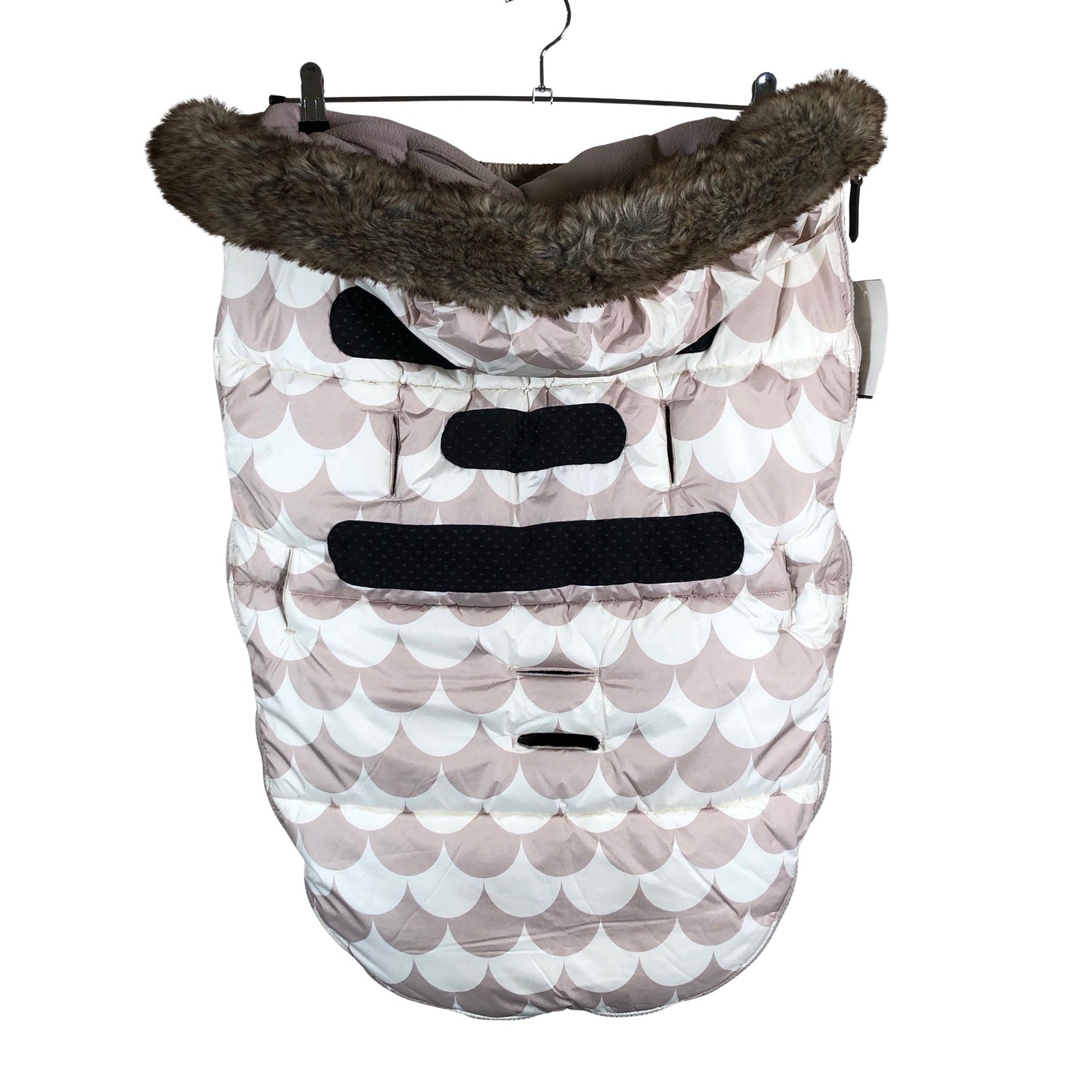 Fleecevuori. Tuotteessa on aukot turvavöille. Irrotettava karvakaulus. Tuotteen pinnassa on hieman tummentumaa. Tuotteen sisäpuolella on haalea tahra. Yleisilme on siisti. Tuote vaatii pesun.