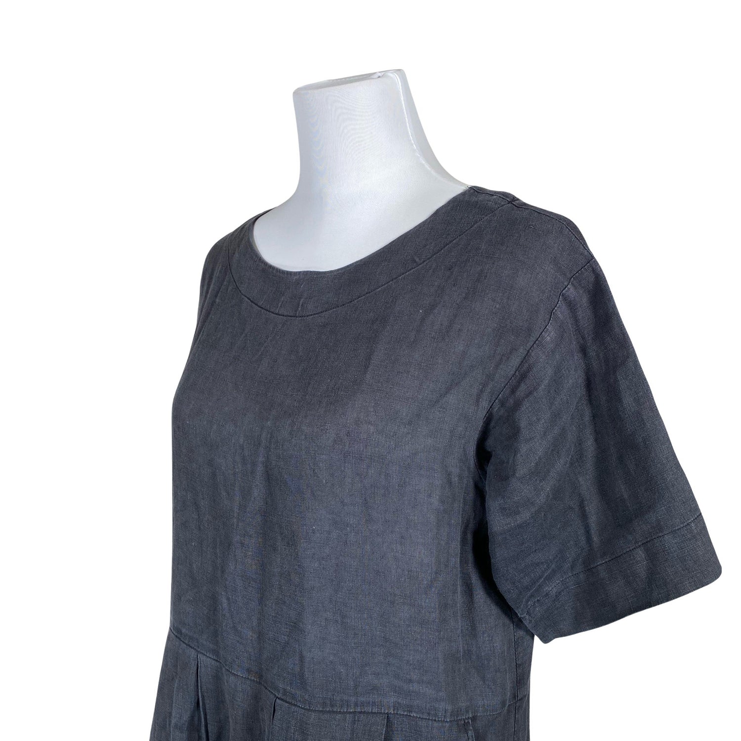 Pellavaa. Vaatteessa on taskut. Tuotteen pinnassa on hieman pesu-/käyttökulumaa. Yleisilme on siisti.