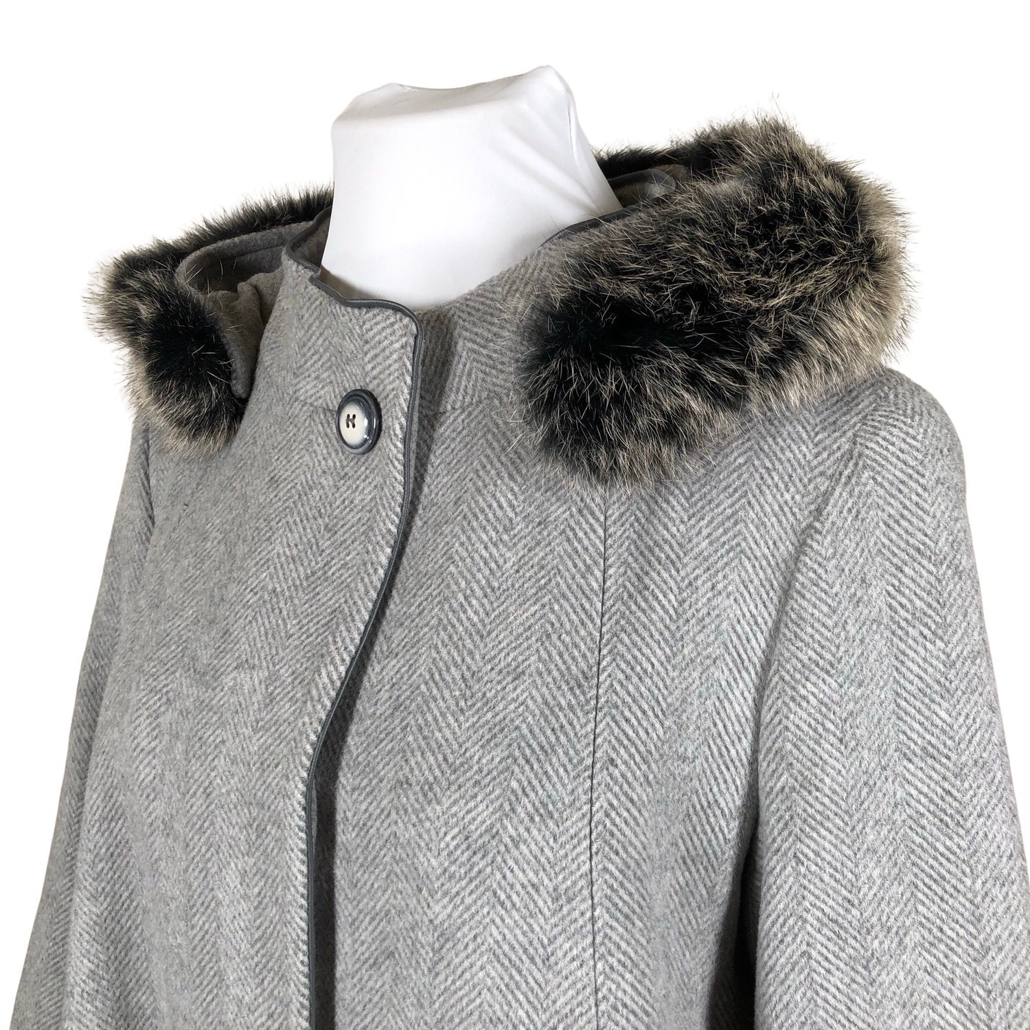 Villasekoitetta. Tuotteessa on ohut vuori. Irrotettava huppu.