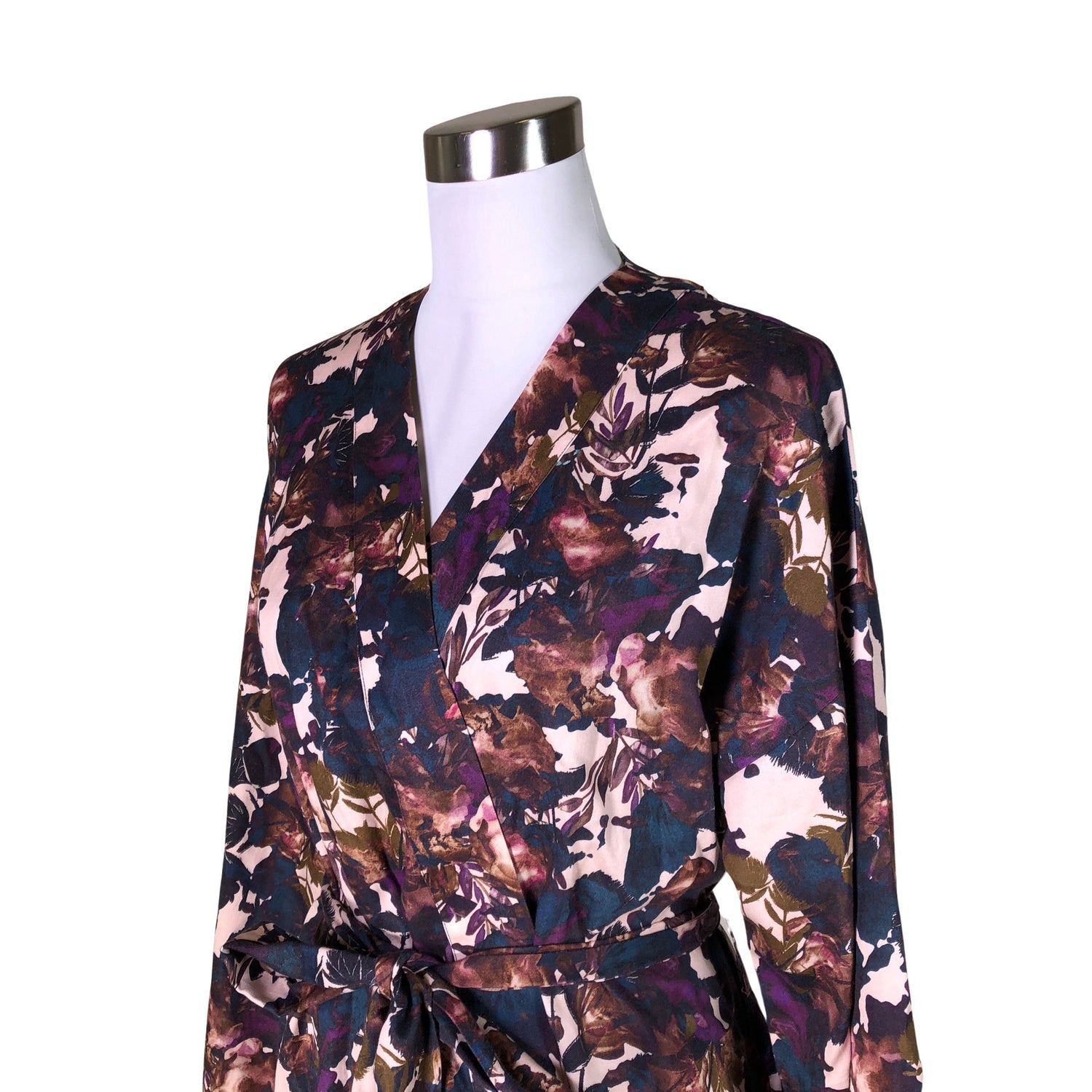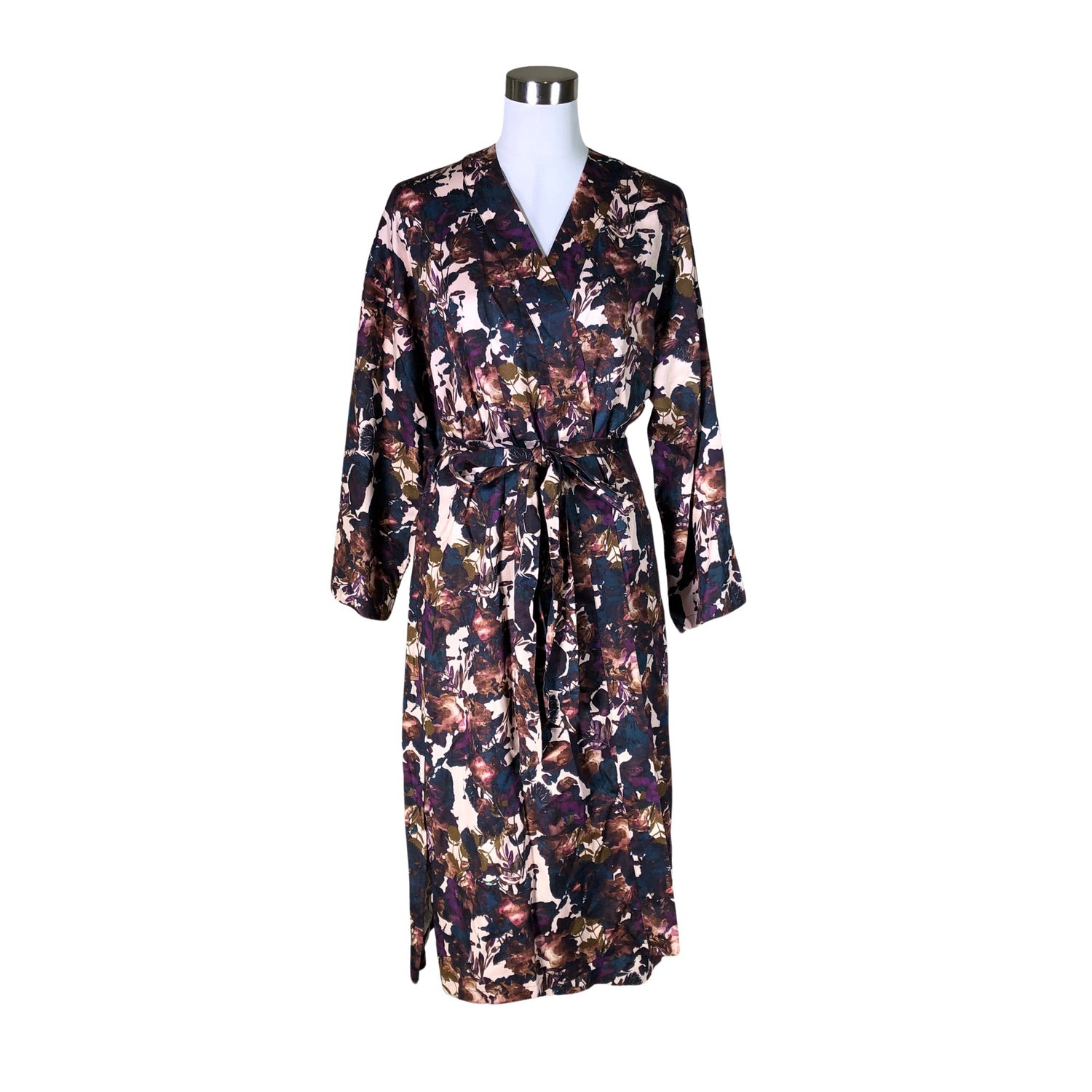 Malli: Kimono Coat, Midnight Garden. Materiaali ei jousta. Pitkä malli. Sivusaumoissa on halkiot. Kiristysnauha vyötäröllä. Monikäyttöinen tuote. Arkeen ja juhlaan. Sopii sisä- ja ulkokäyttöön.