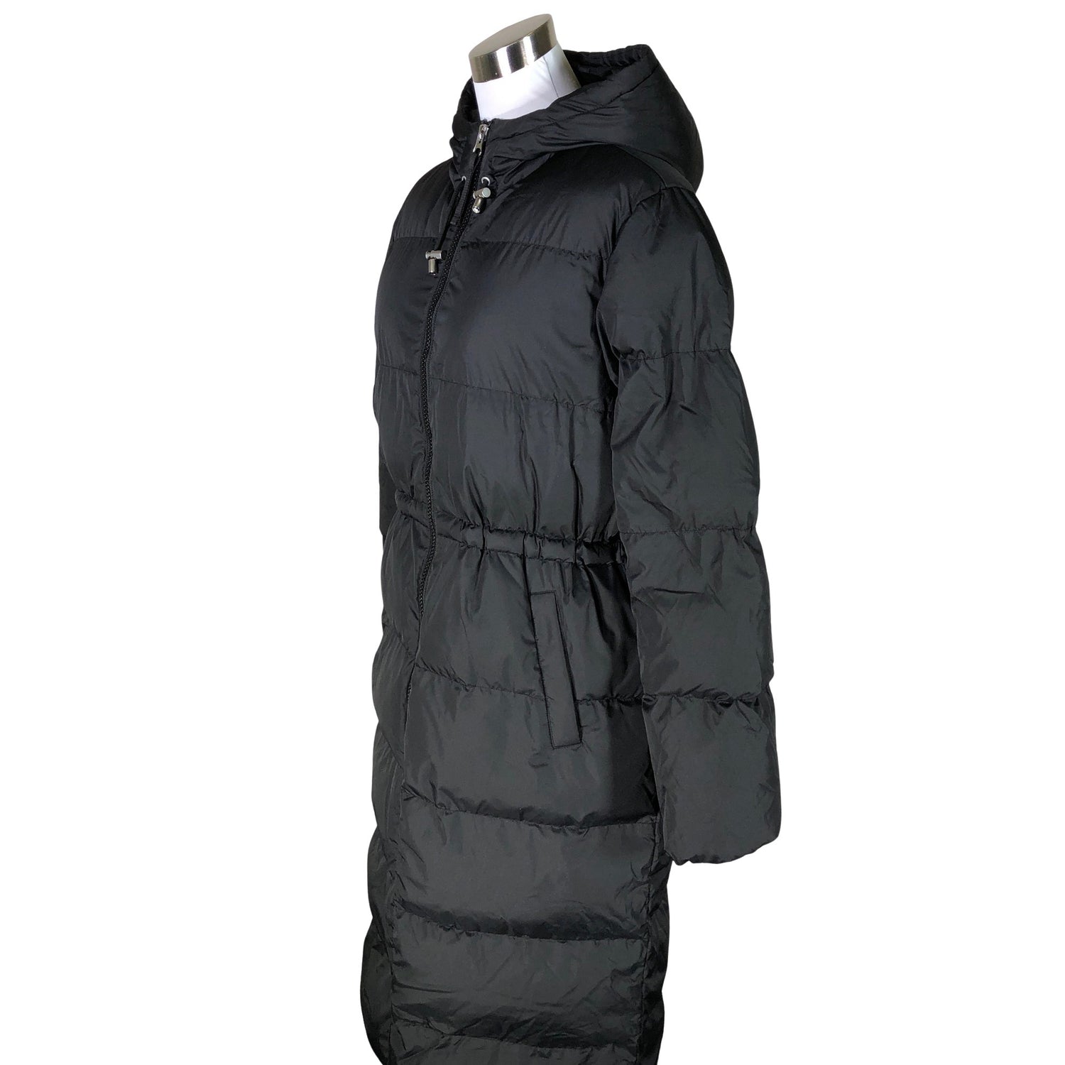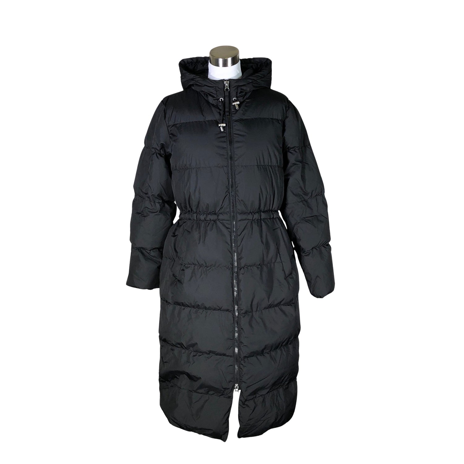 Malli: Hanki. Kiristysnauha vyötäröllä. Tuotteessa on kaksisuuntainen vetoketju. Kauluksen sisäpuolella on aavistus tummentumaa. Tuote on muilta osin hyvässä kunnossa.
