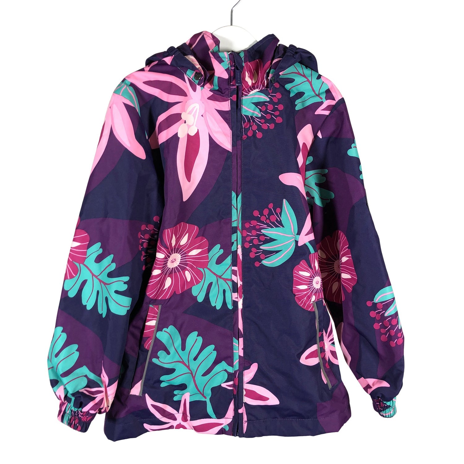 Huppa Välikausitakki, koko 122 - 128. Irrotettava huppu. Kevyesti topattu. Joustava vyötärö. Tuotteessa on heijastavia yksityiskohtia.