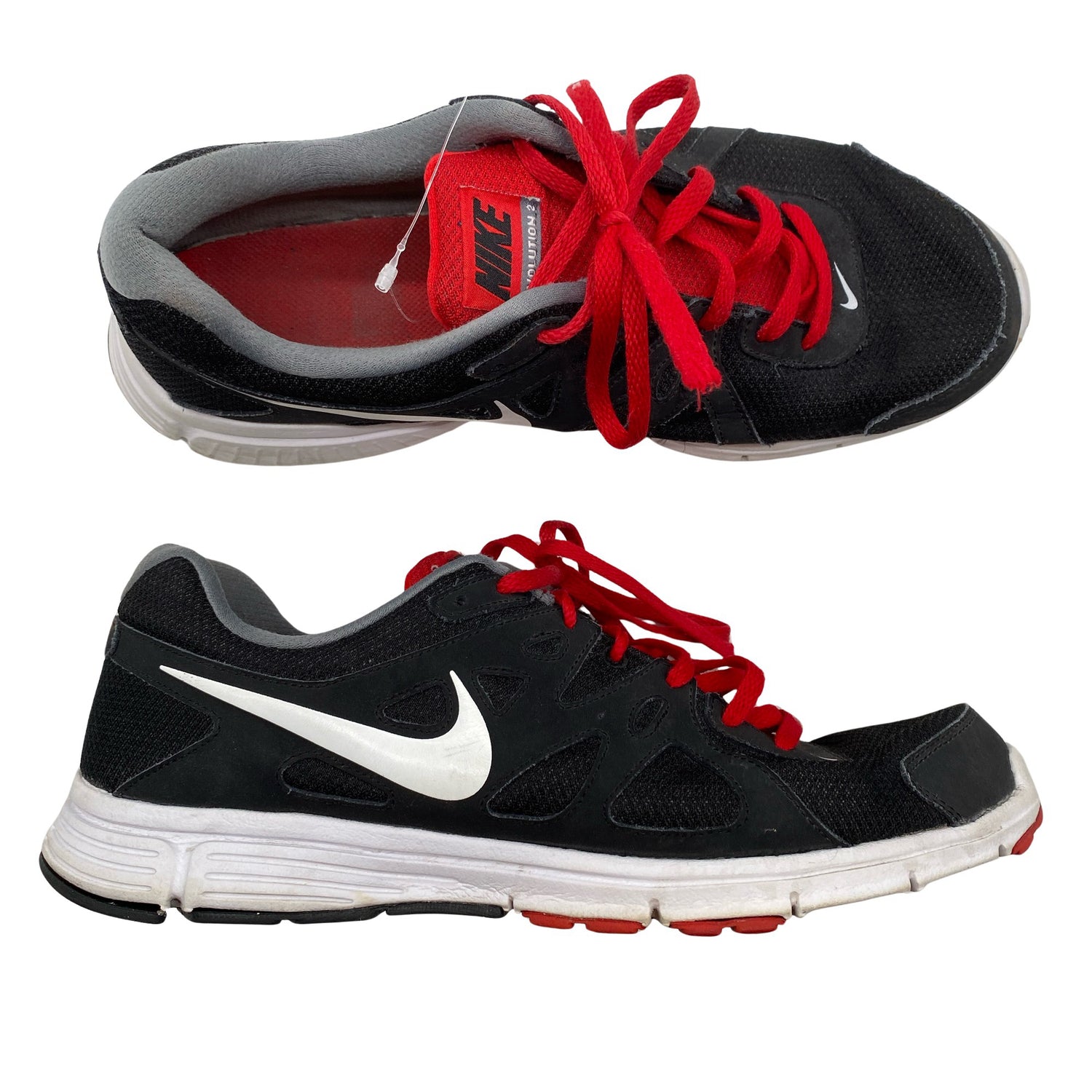 Nike Juoksukengät, koko 47. Malli: Revolution 2. Tuotteen pinnassa on hieman pesu-/käyttökulumaa. Tuotteen pinnassa on muutama tahra. Yleisilme on siisti.