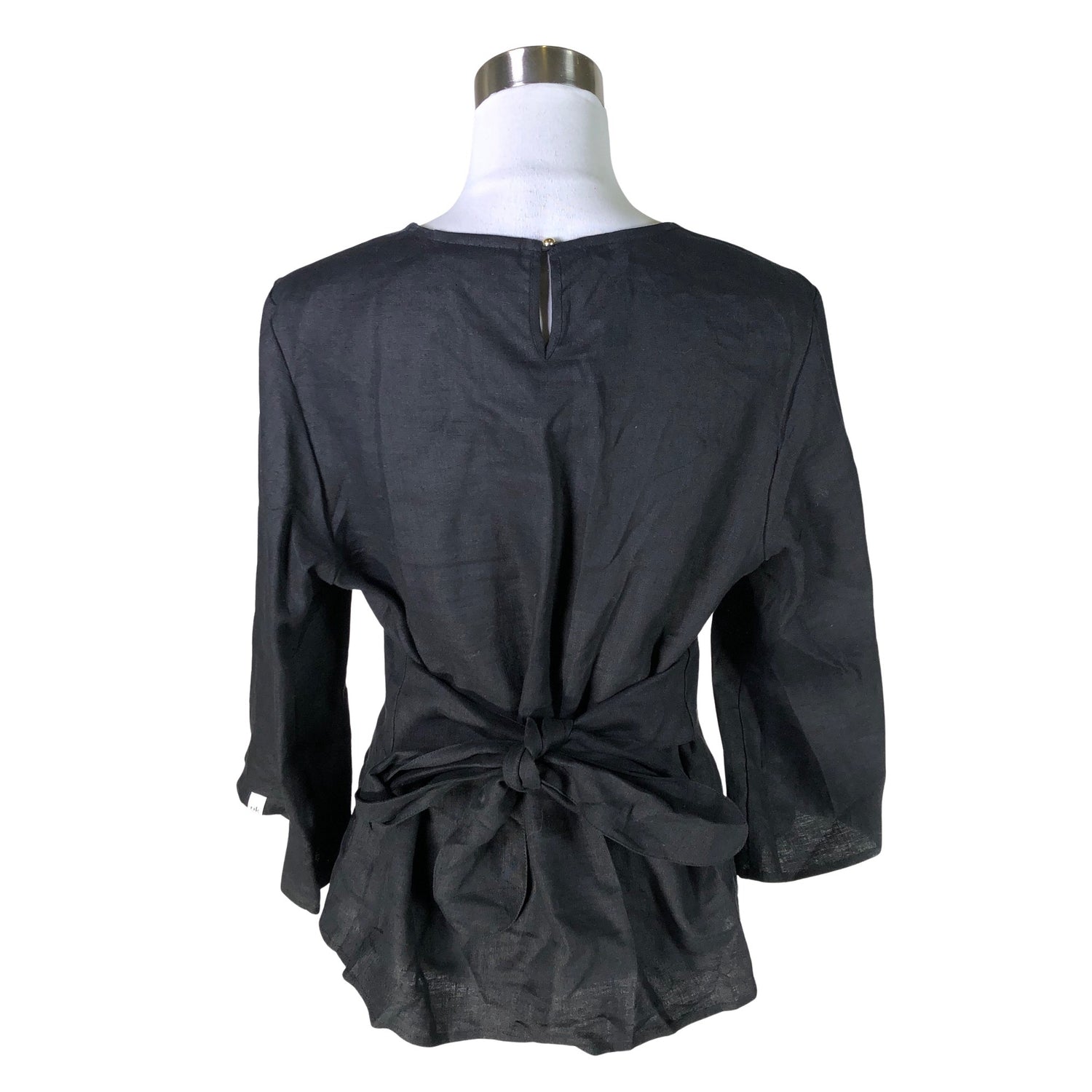 Pellavaa. Kiristysnauha vyötäröllä. Materiaali ei jousta. Tuotteen pinnassa on muutama haalea tahra. Tuotteen pinnassa on aavistus pesu-/käyttökulumaa. Yleisilme on siisti.