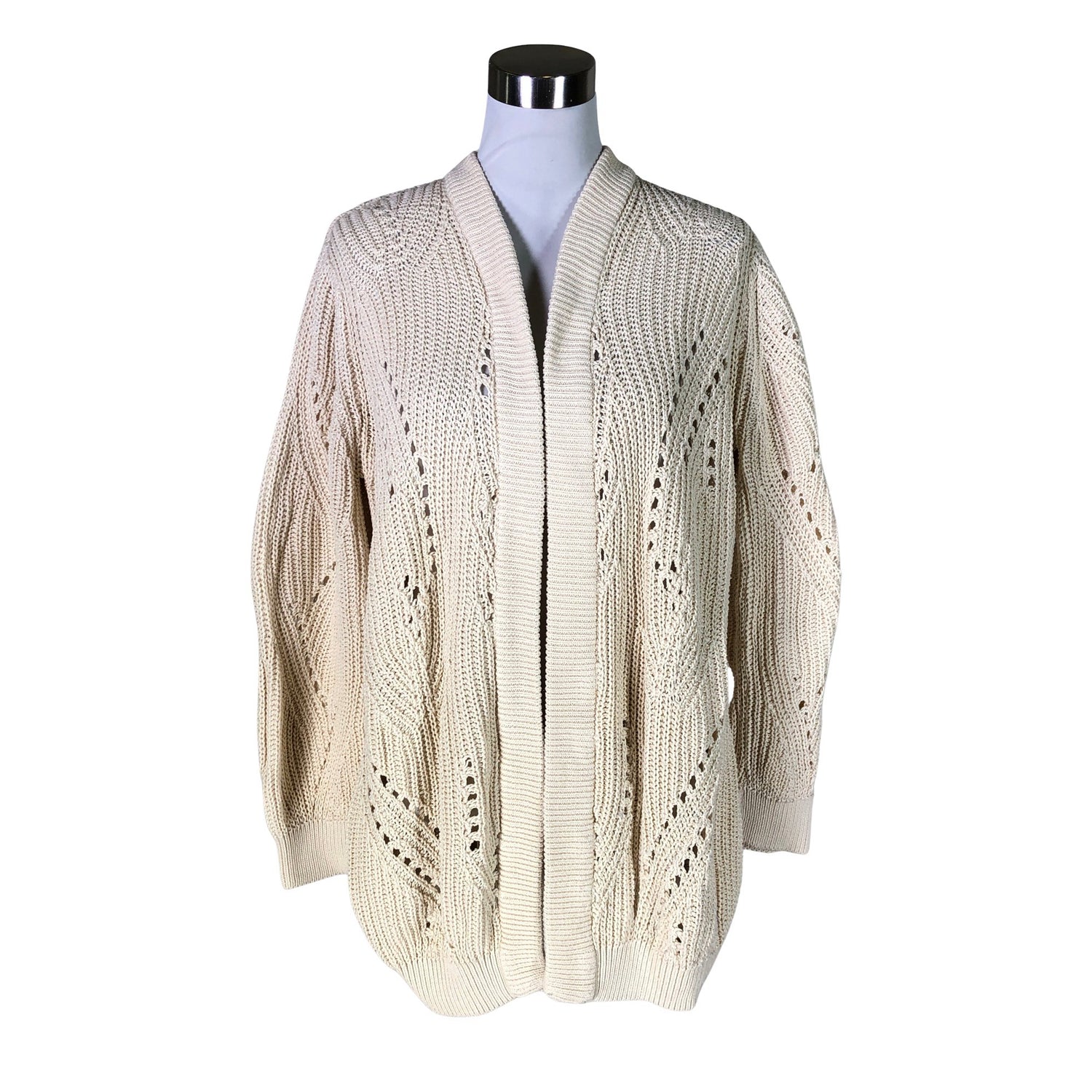 Avonainen malli. Puuvillaa. Tuotteen pinnassa on aavistus pesu-/käyttökulumaa. Yleisilme on siisti.